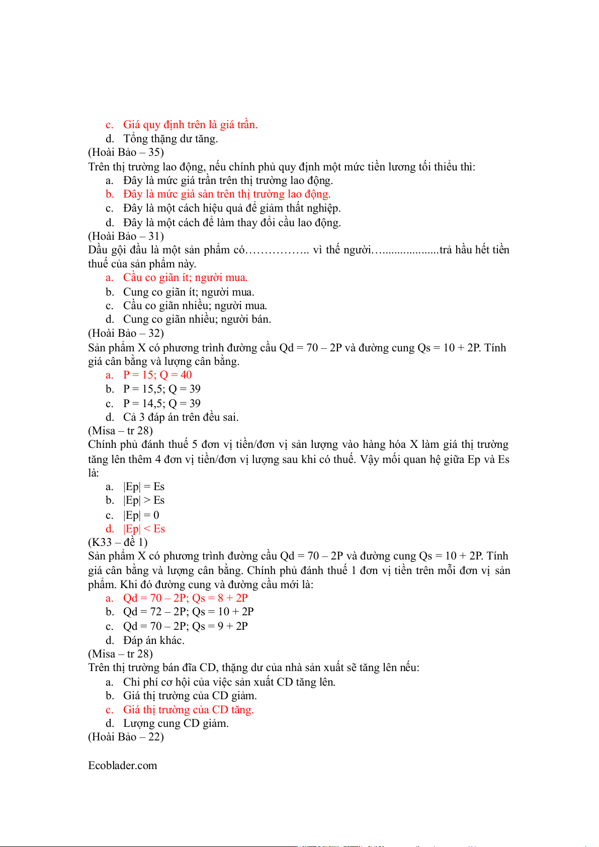 c. Giá thị trường của CD tăng. d. Lượng cung CD giảm. (Hoài Bảo – 22) Ecoblader.com