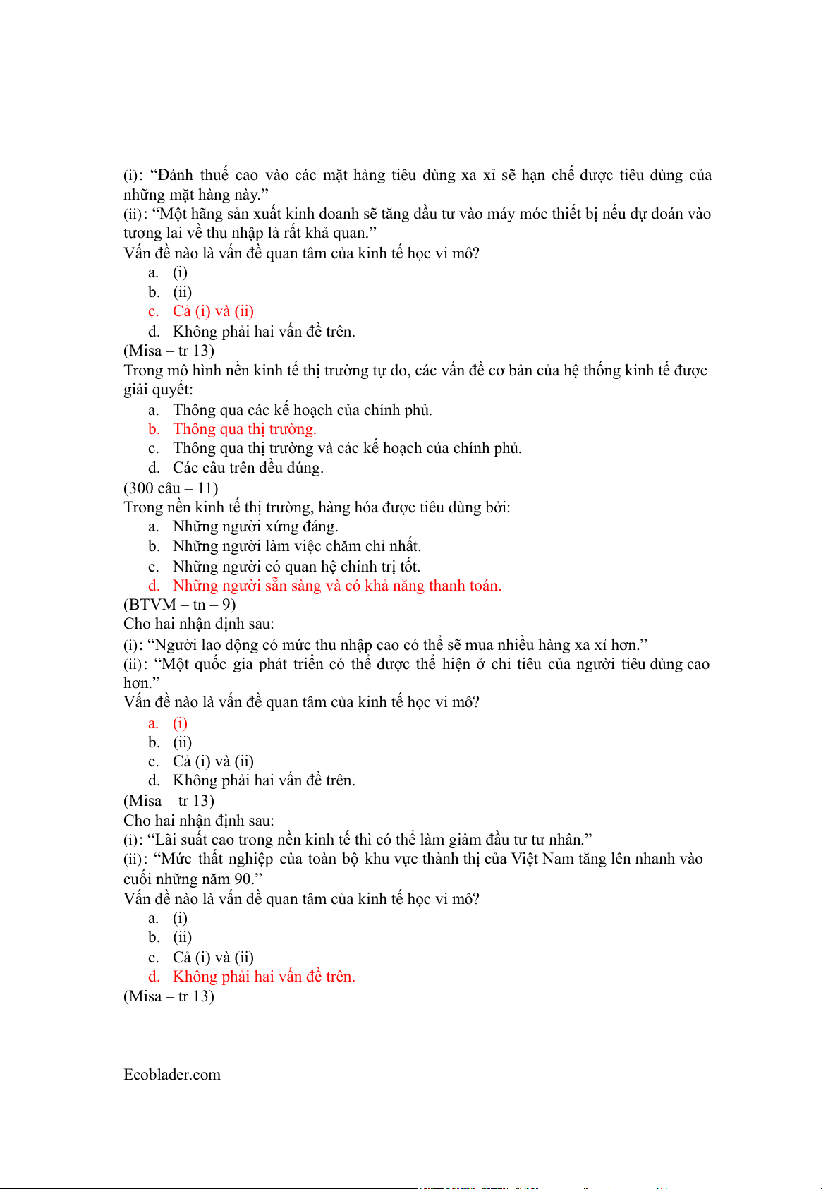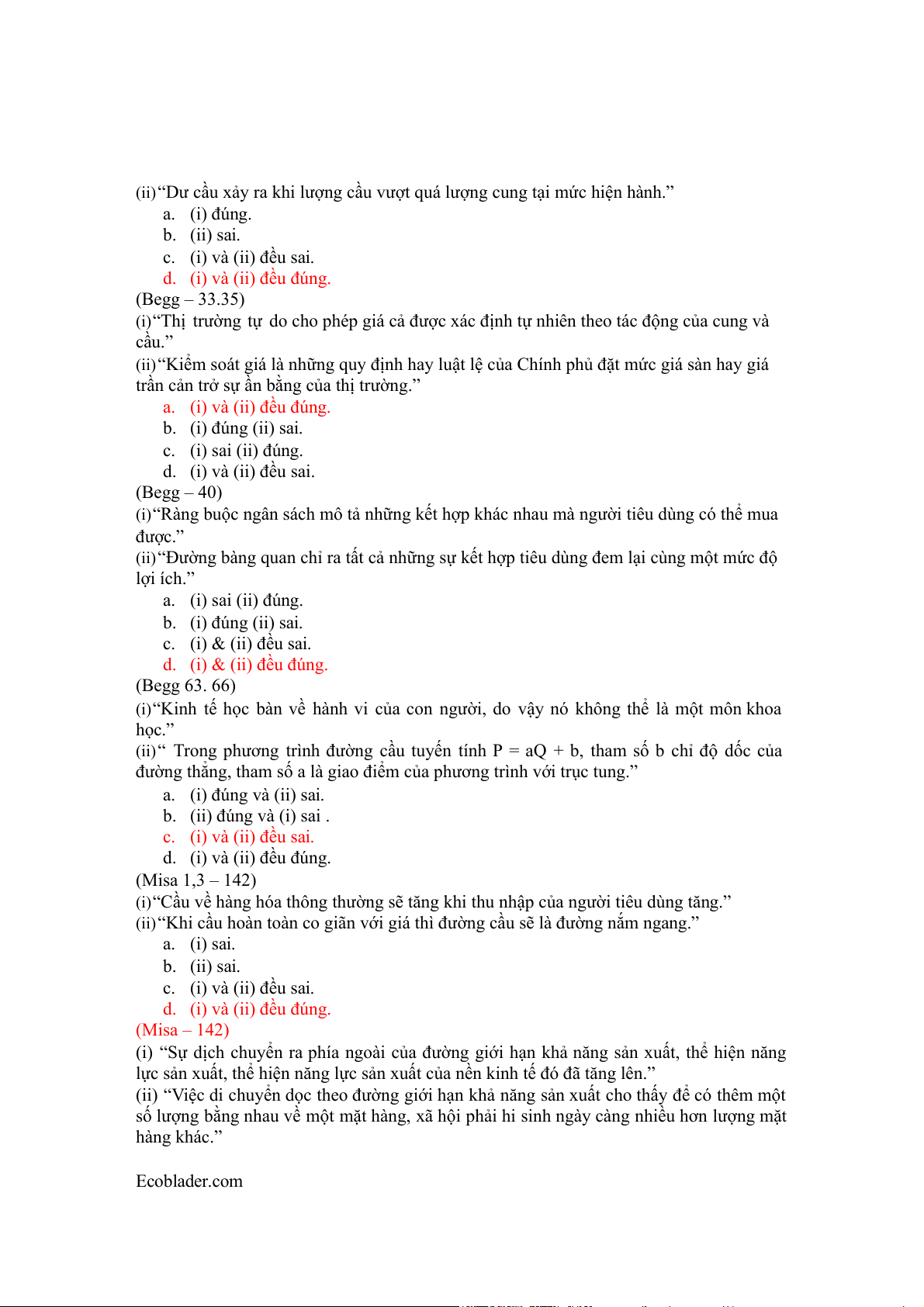 tất cả các loại hàng hóa.” a. (i) đúng. b. (ii) đúng. c. (i) và (ii) đều đúng. d. (i) và (ii) đều sai. (Misa – 142)