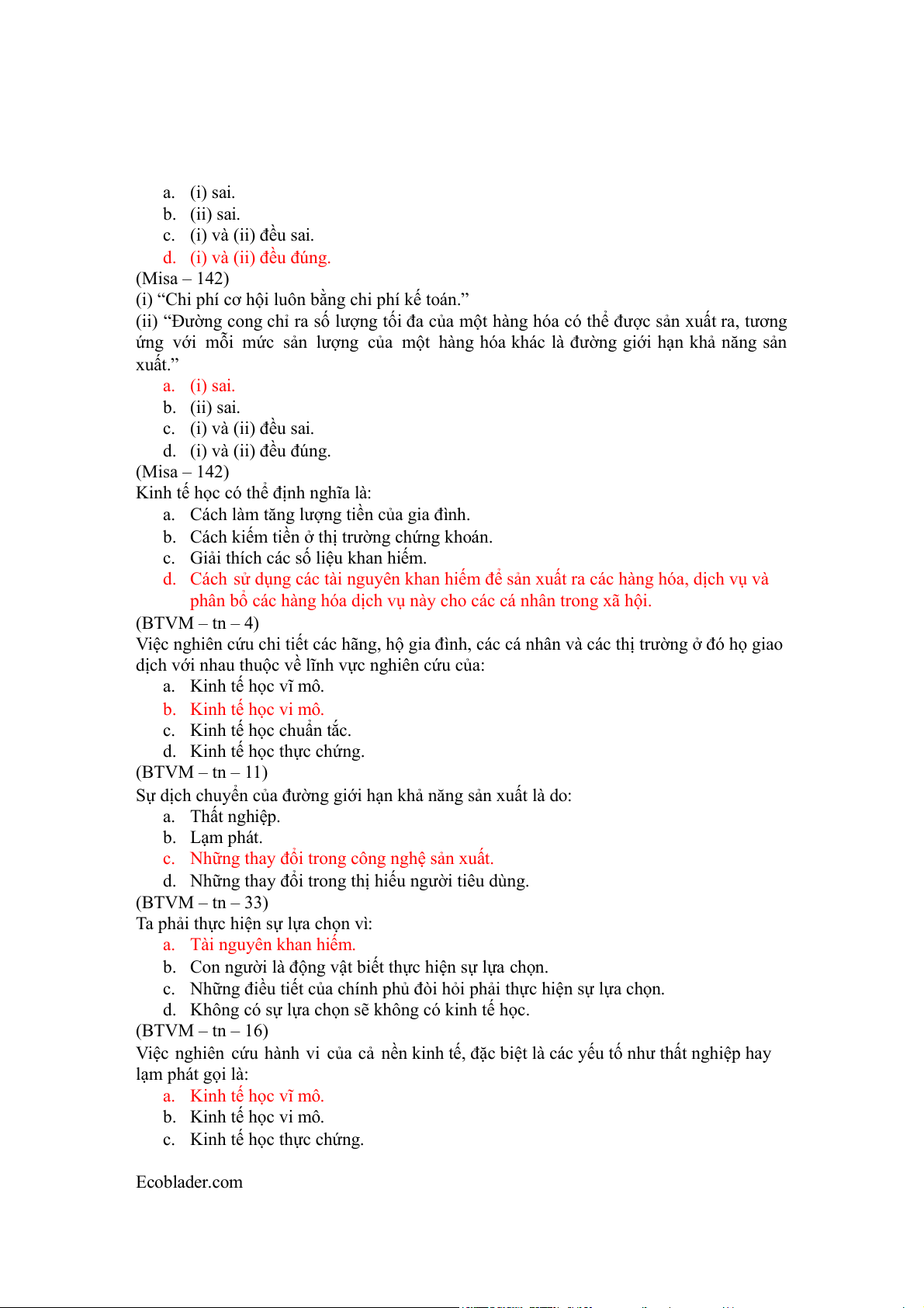 số lượng bằng nhau về một mặt hàng, xã hội phải hi sinh ngày càng nhiều hơn lượng mặt hàng khác.” Ecoblader.com a. (i) sai. b. (ii) sai. c. (i) và (ii) đều sai. d. (i) và (ii) đều đúng. (Misa – 142)