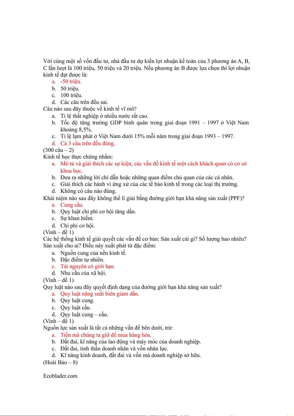 d. Kinh tế học vĩ mô, thực chứng. (300 câu – 13)
