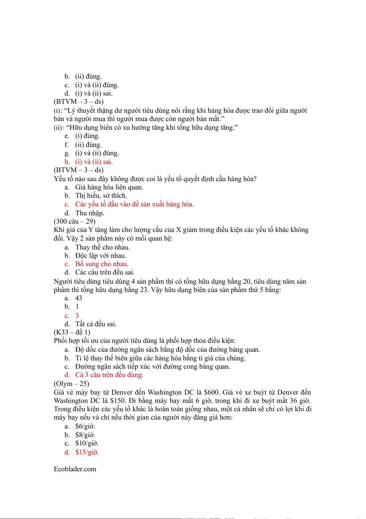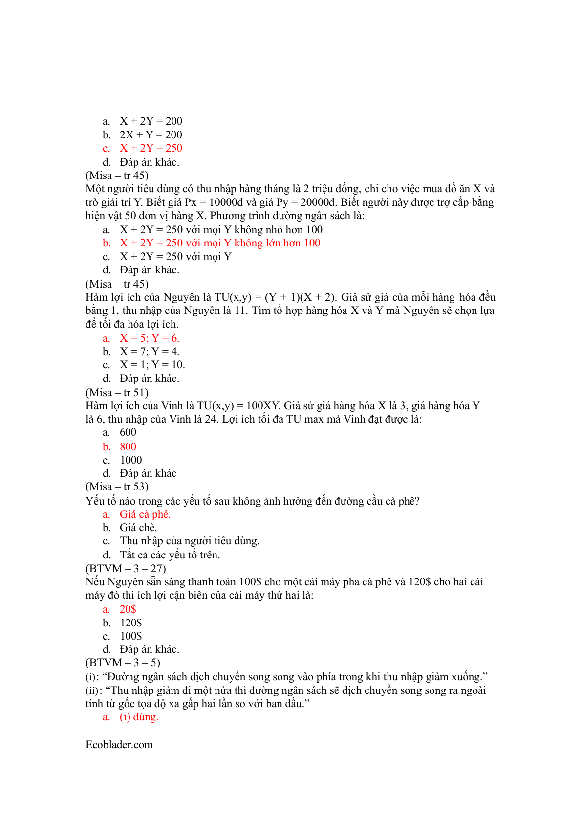 c. Độ dốc của đường ngân sách. d. Tỷ lệ thay thế biên. (300 câu – 124)