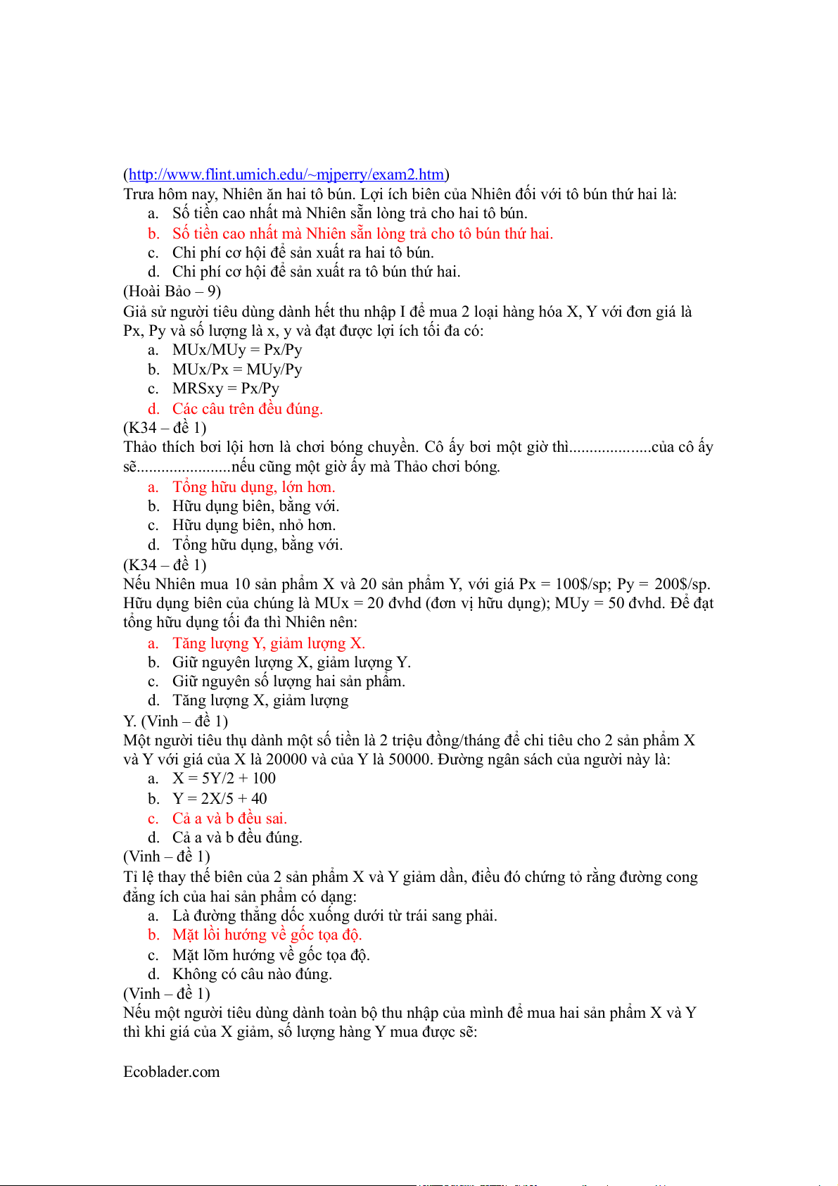 Dưới đây là tổng hợp một số câu hỏi môn kinh tế vi mô mà nhóm chúng