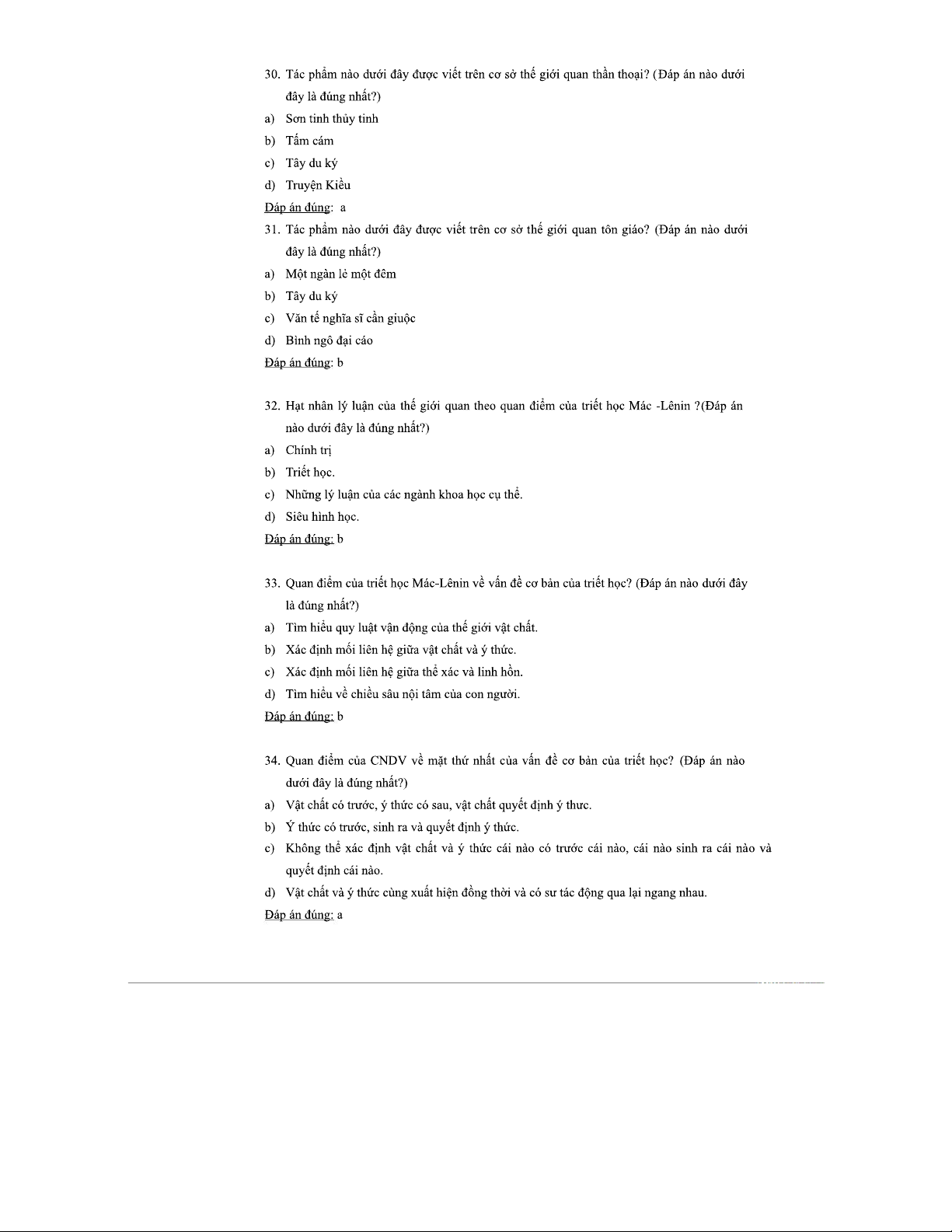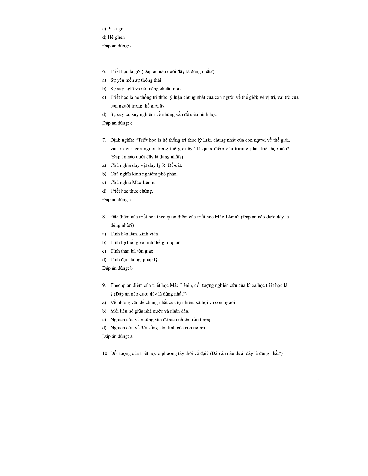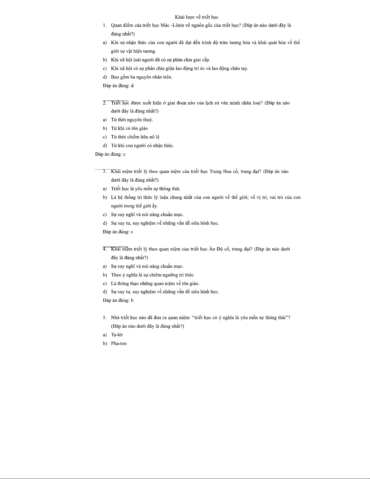 CÂU HỎI TRẮC NGHIỆM TRIẾT HỌC MÁC-LÊNIN: TỔNG HỢP VÀ PHÂN TÍCH