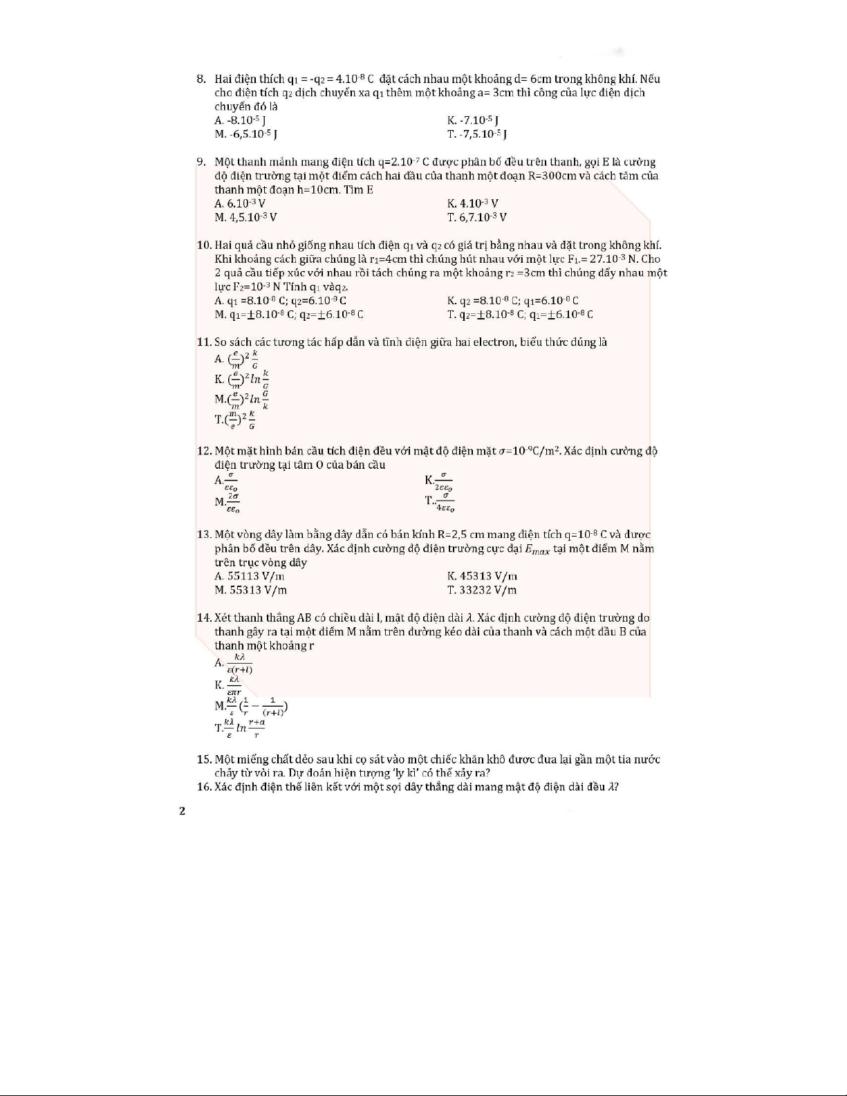 Câu hỏi Tự luận và Trắc nghiệm môn Vật lý đại cương 2 | Học việnCông Nghệ Bưu Chính Viễn Thông. Tài liệu giúp bạn tham khảo, ôn tập và đạt kết quả cao. Mời đọc đón xem!