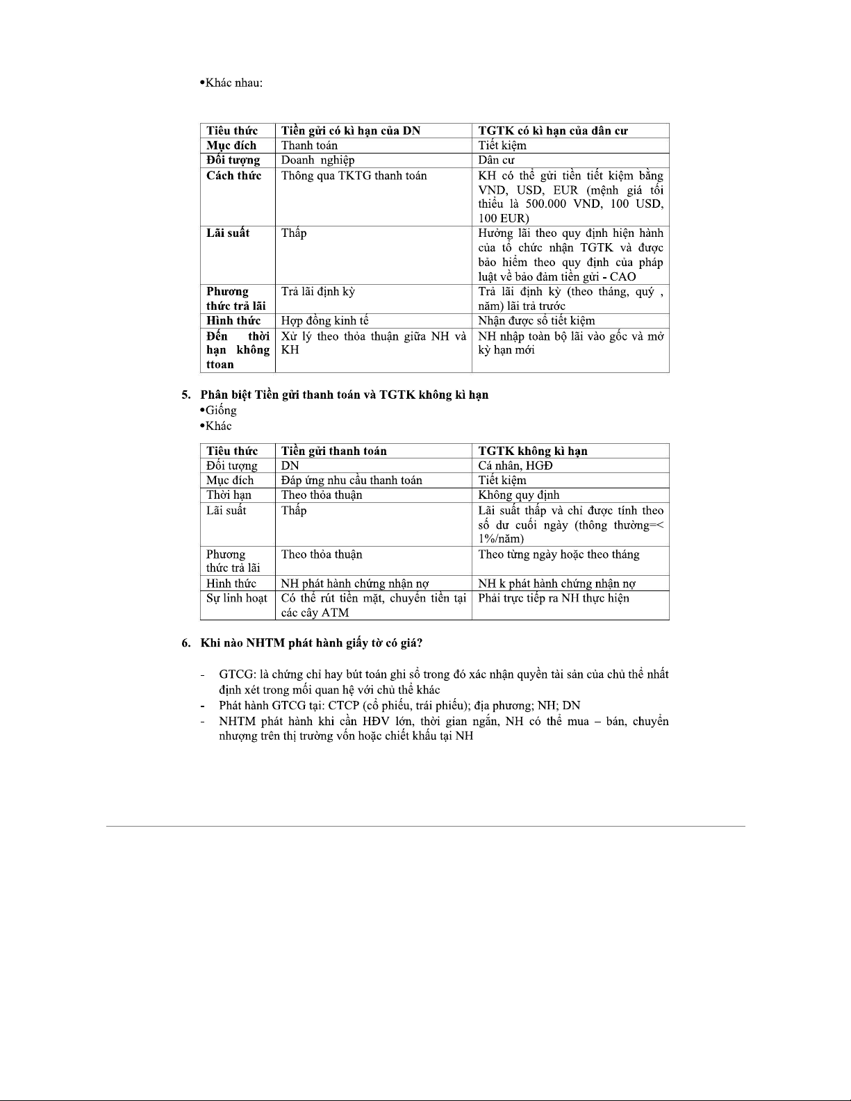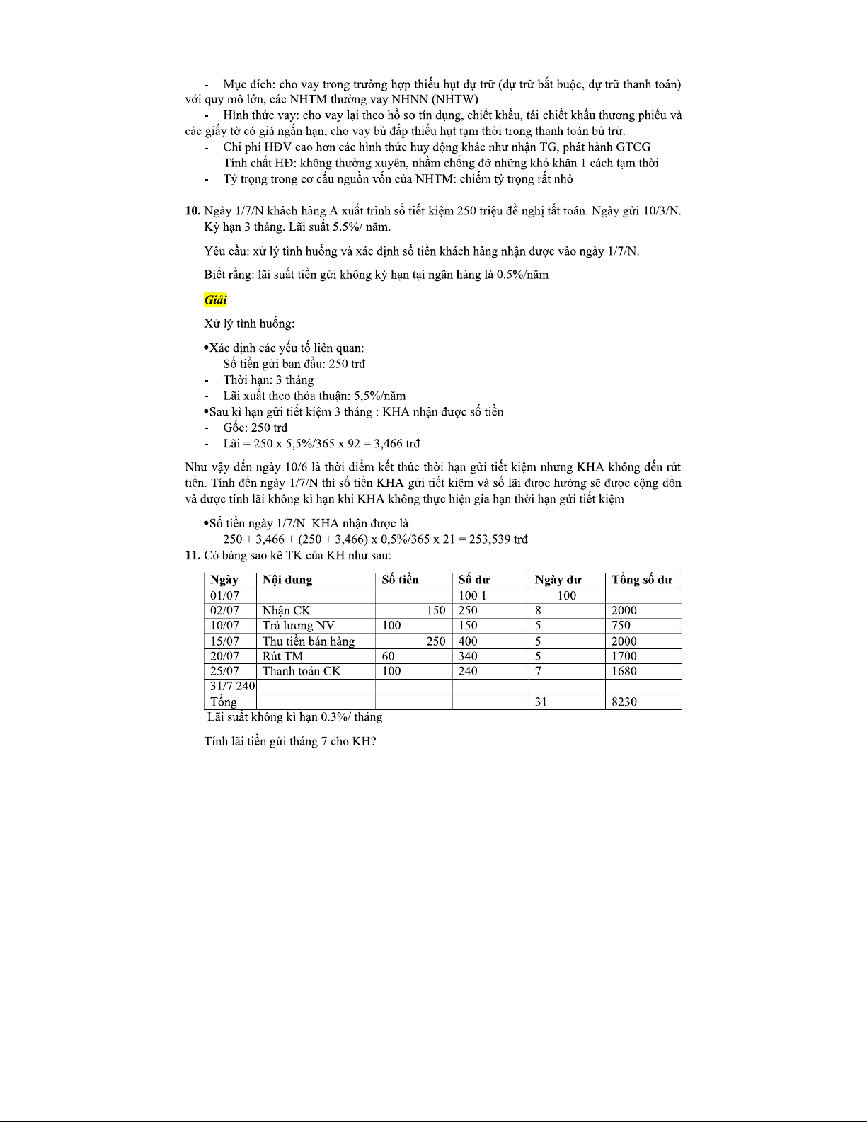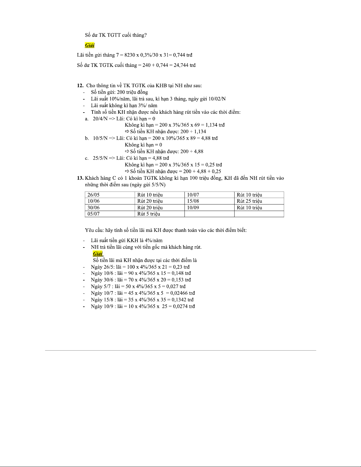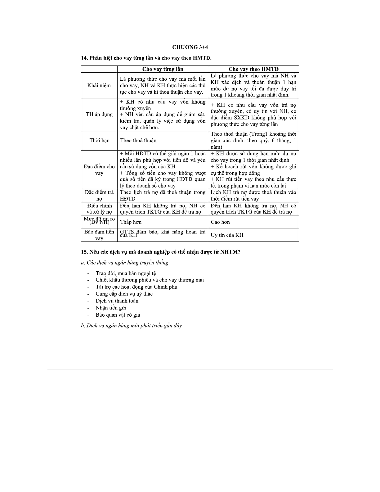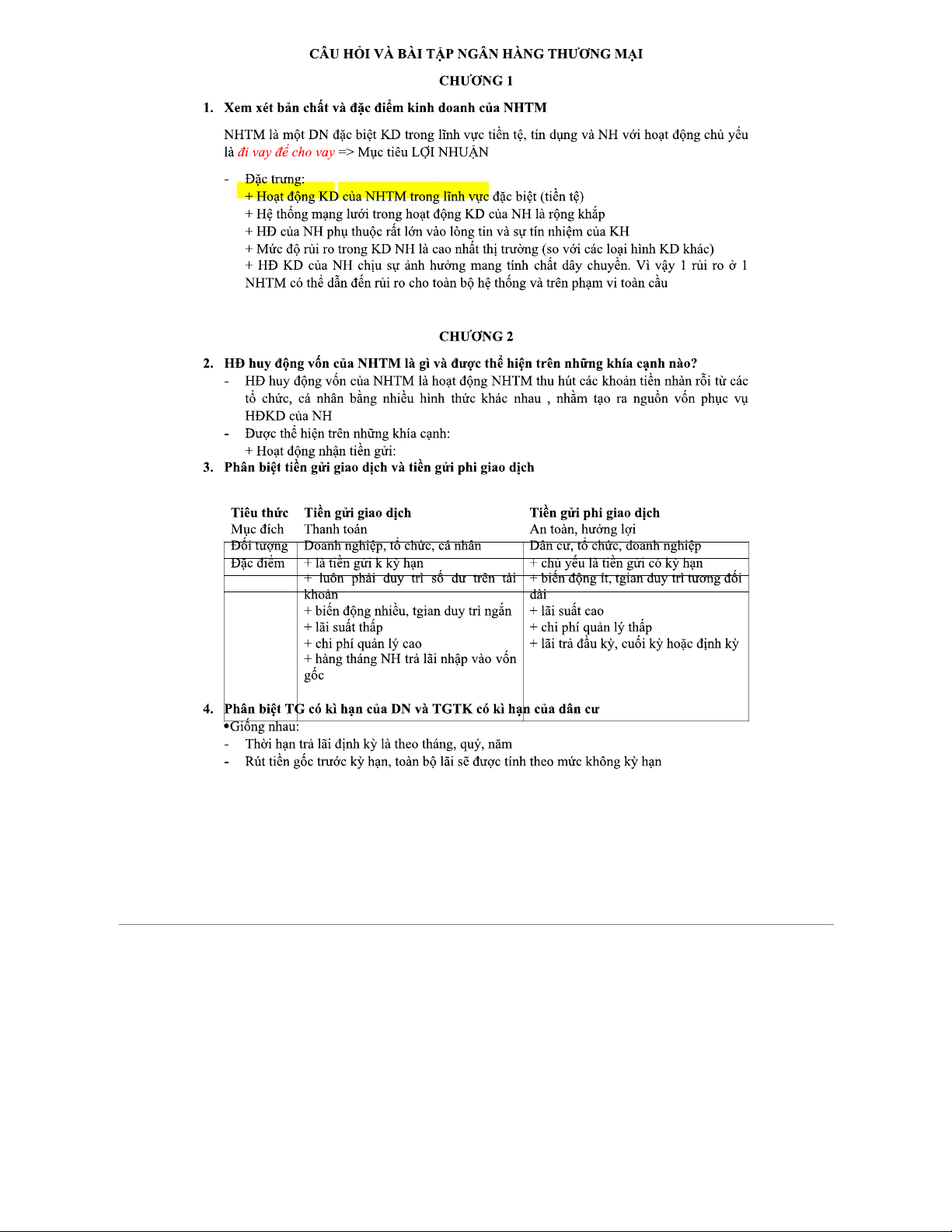Câu Hỏi và Bài Tập Ngân Hàng Thương Mại - Chương 1 & 2