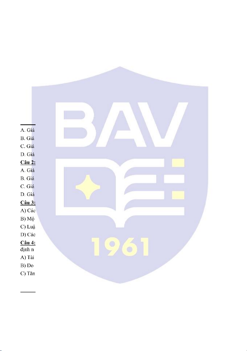 Câu 4: OECD đã xây dựng các hướng dẫn về chuyển giá vào năm nào? A. 1979 B. 1989 C. 2009 D. 2019