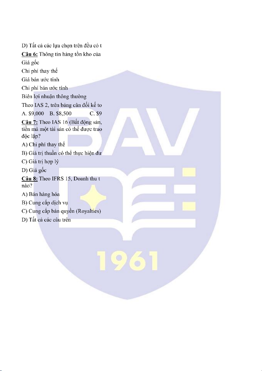 Câu 1: Theo U.S. GAAP, TSCĐ được trình bày trên BCĐKT theo: gốc