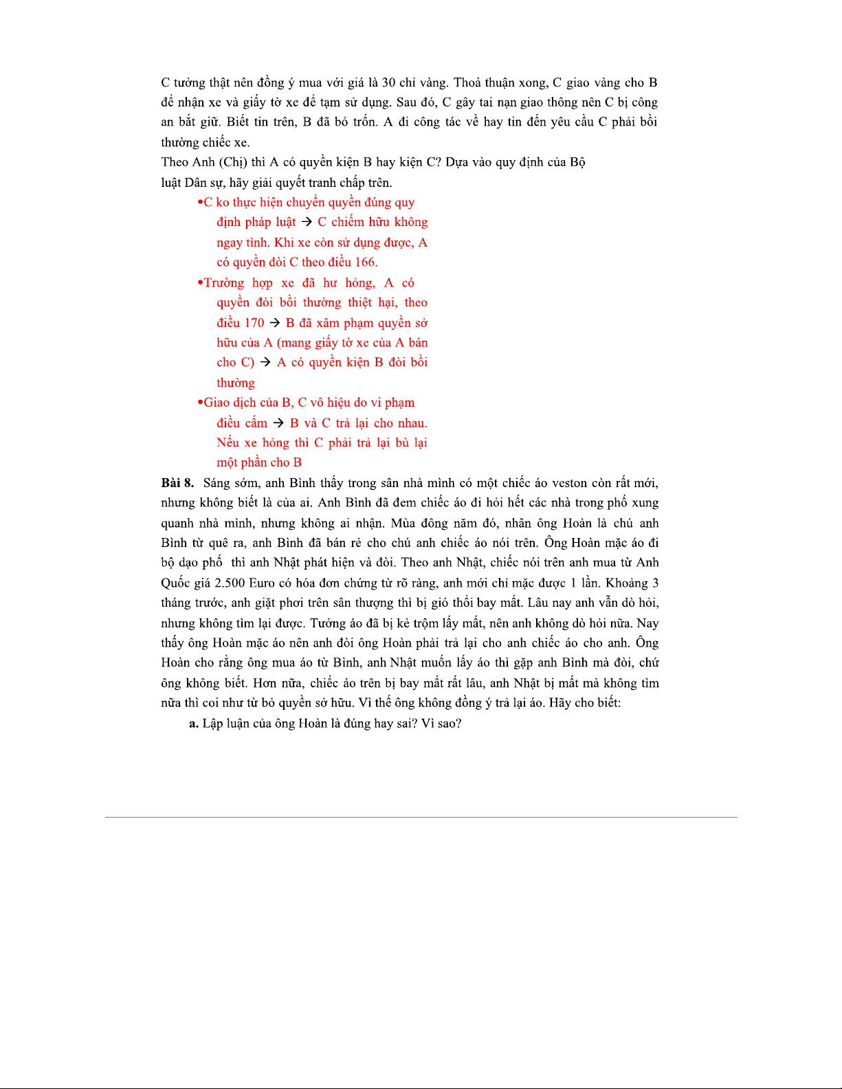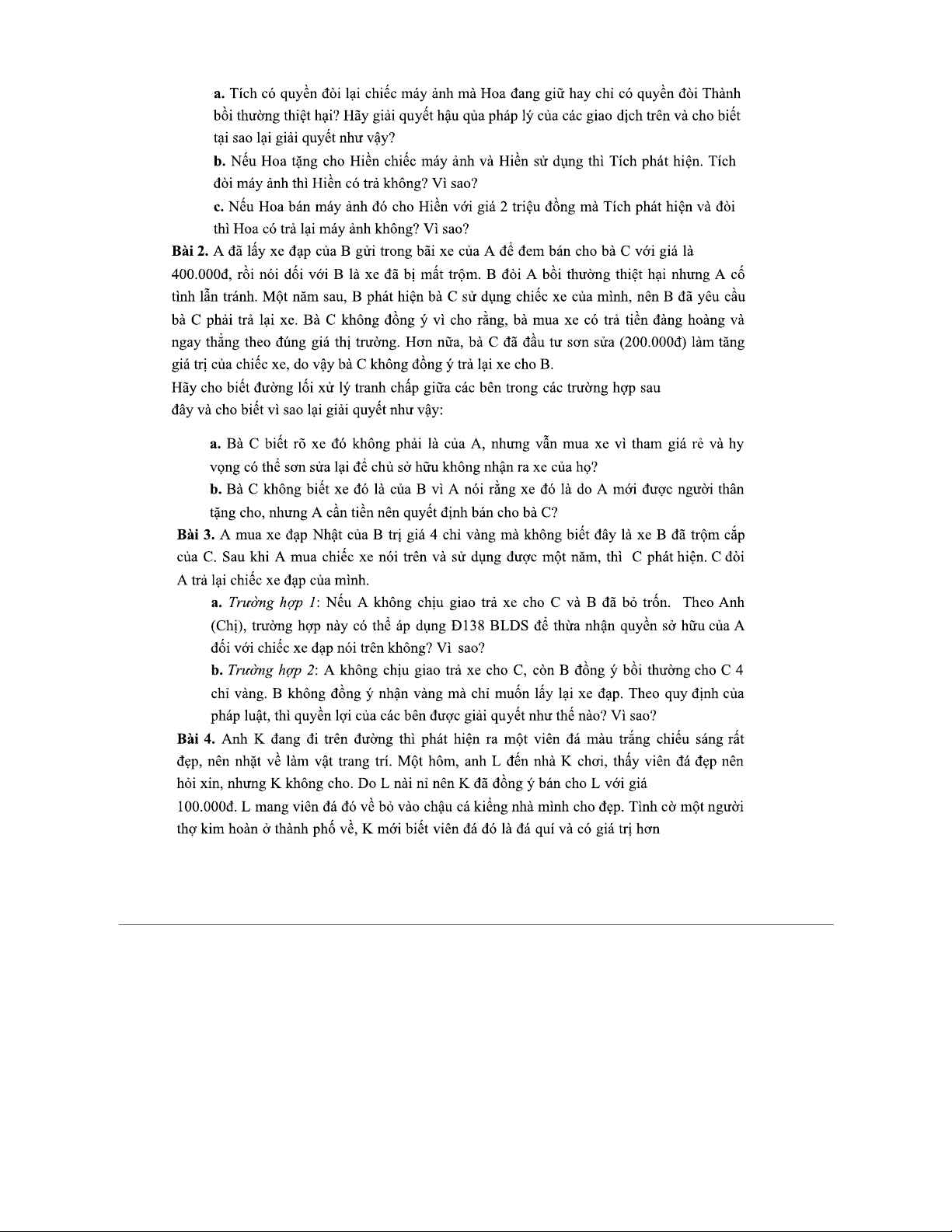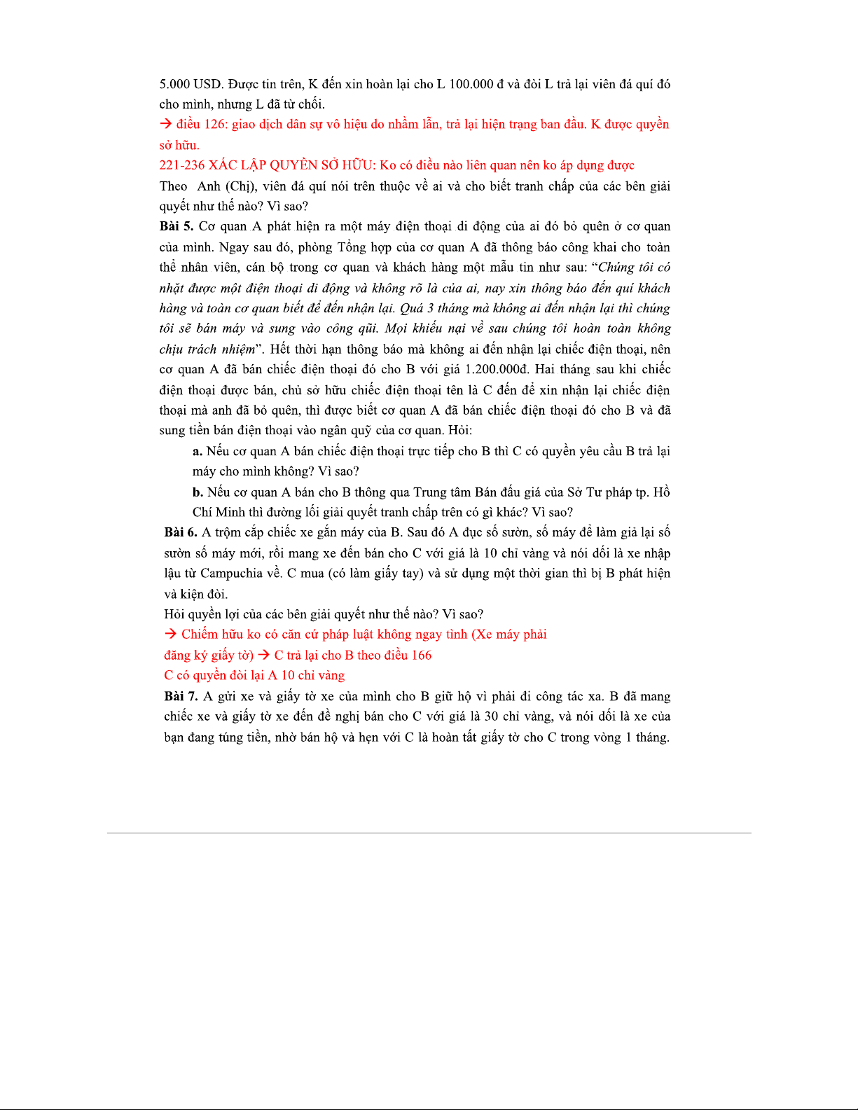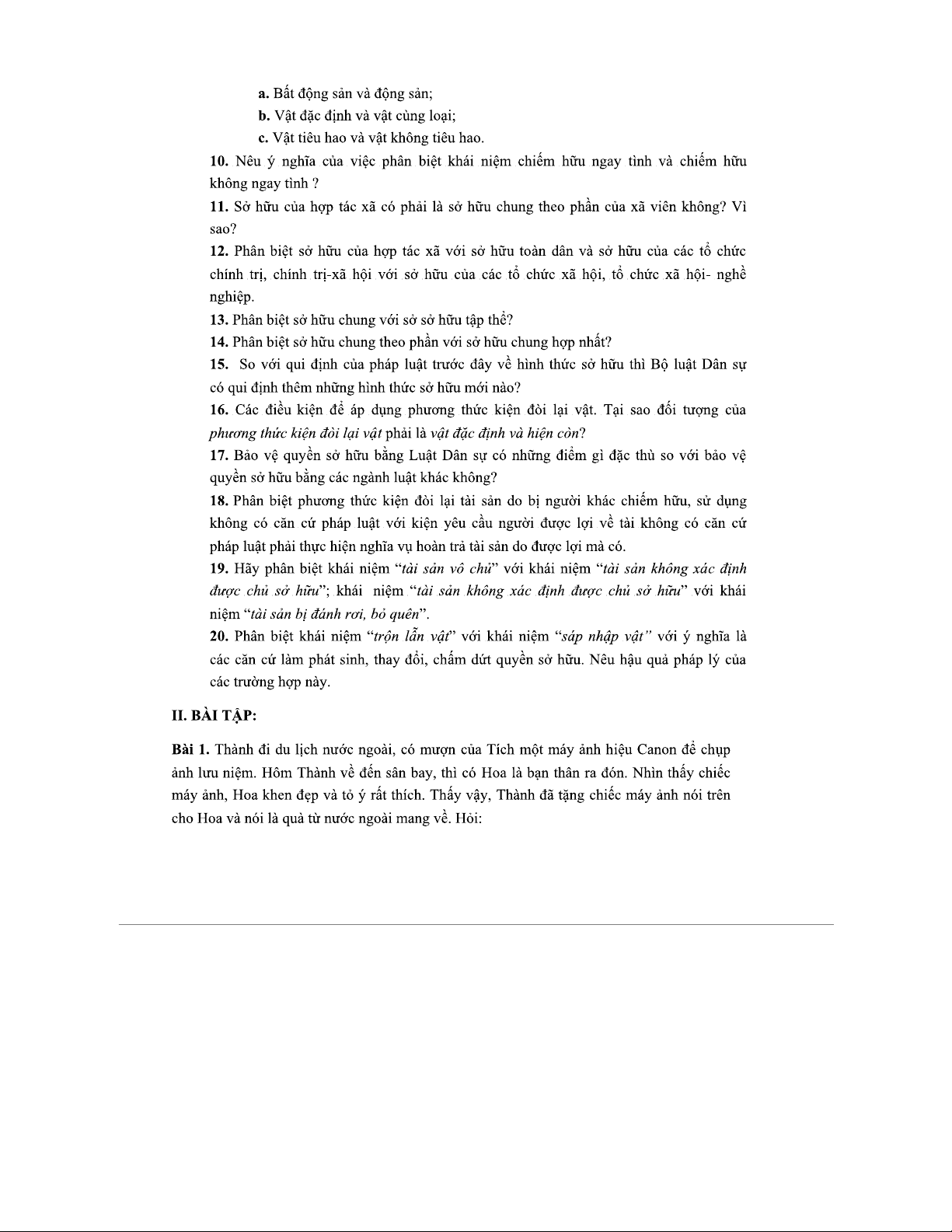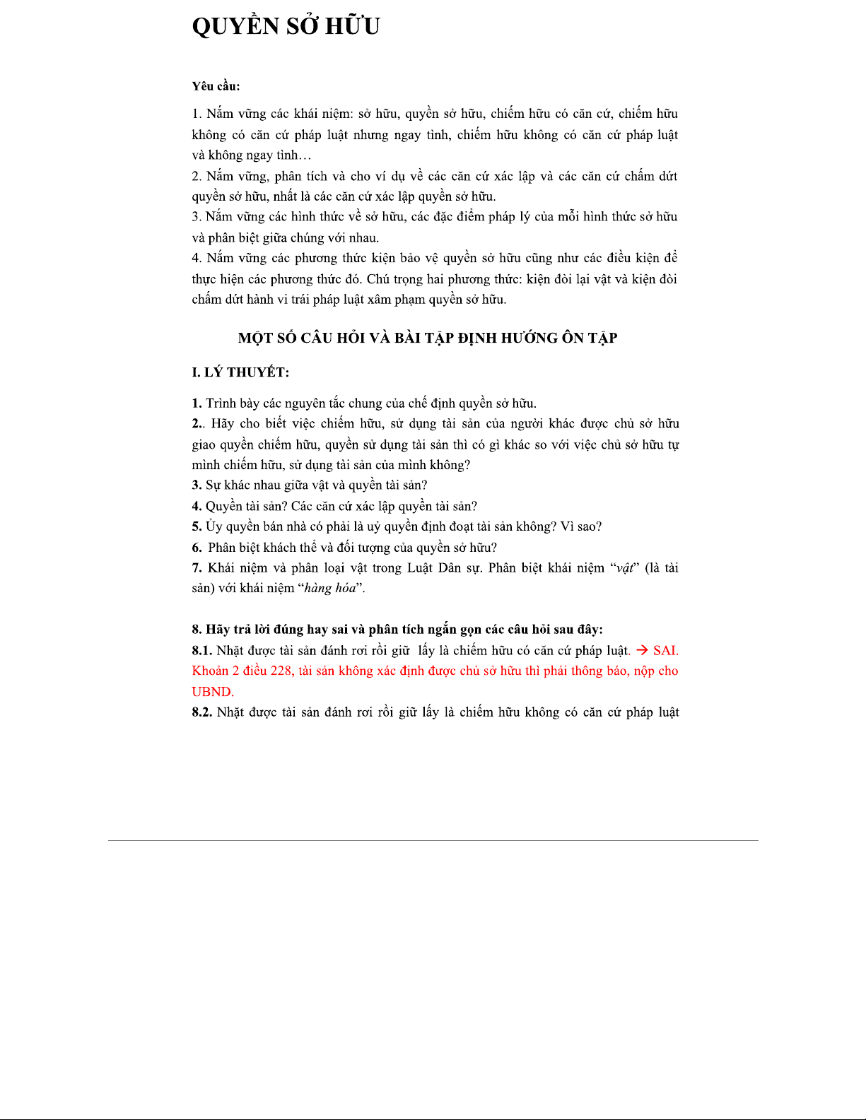 CAU HOI VA BAI TAP VE QUYEN SO HUU: HOCHAT PHAP LY VA THUC TIEN