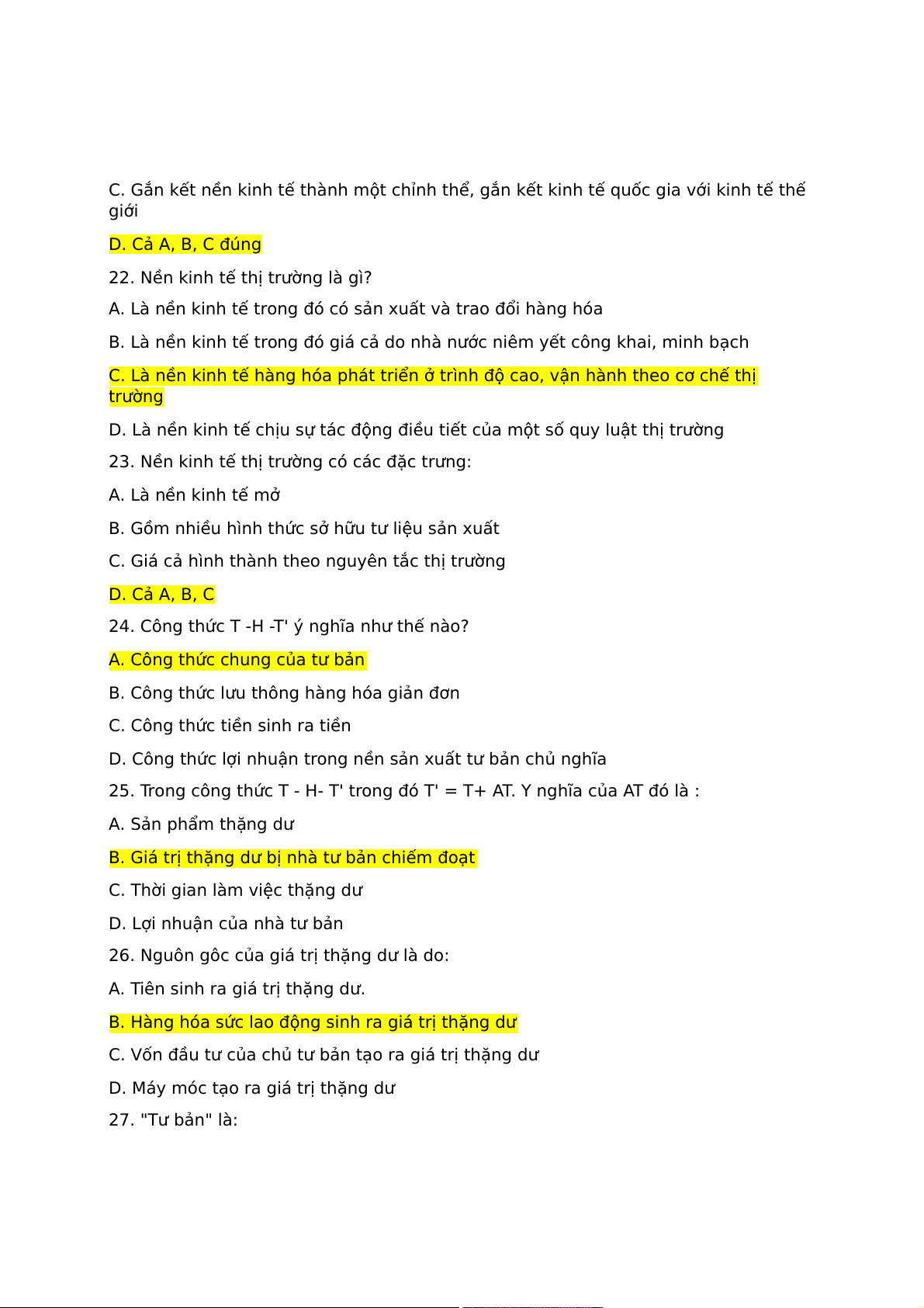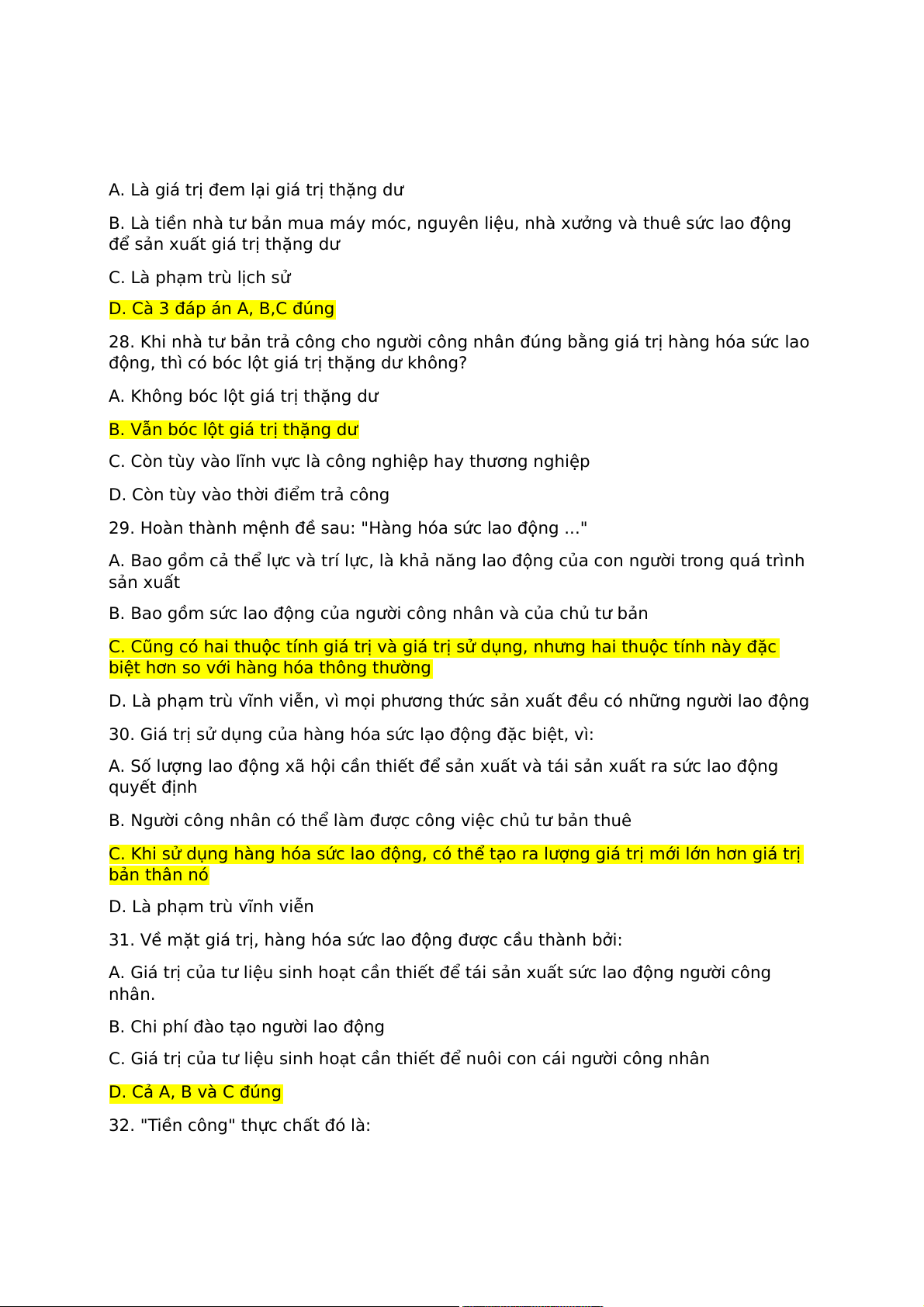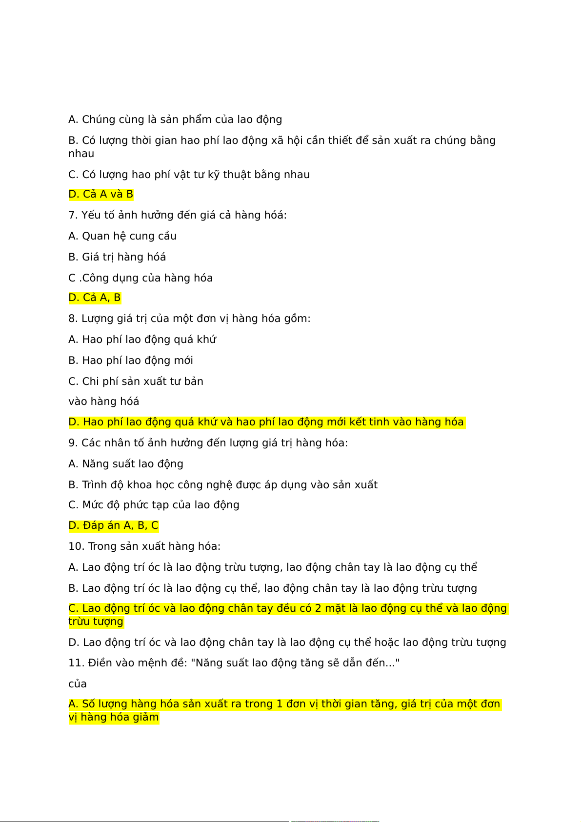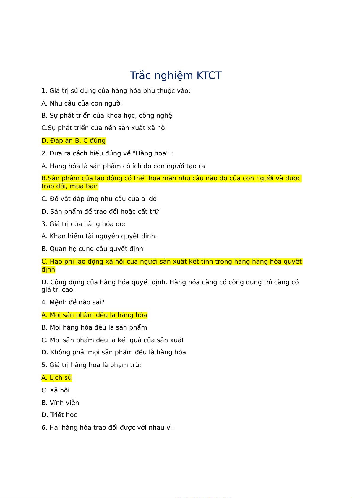5. Giá trị hàng hóa là phạm trù: A. Lịch sử C. Xã hội B. Vĩnh viễn D. Triết học