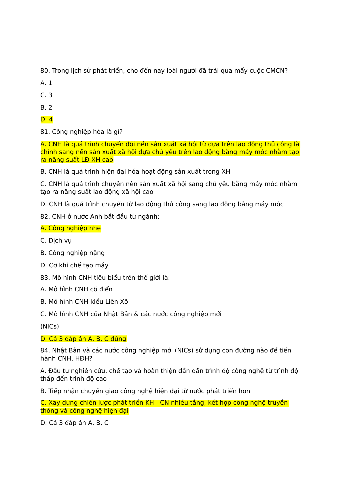 82. CNH ở nước Anh bắt đầu từ ngành: A. Công nghiệp nhẹ C. Dịch vụ B. Công nghiệp nặng D. Cơ khí chế tạo máy