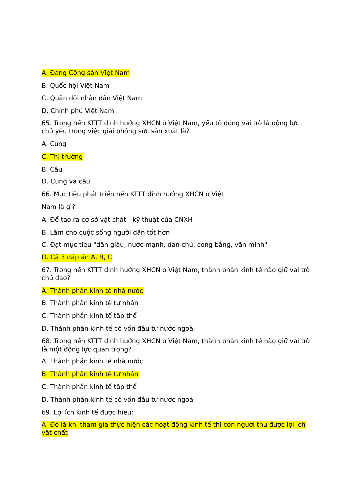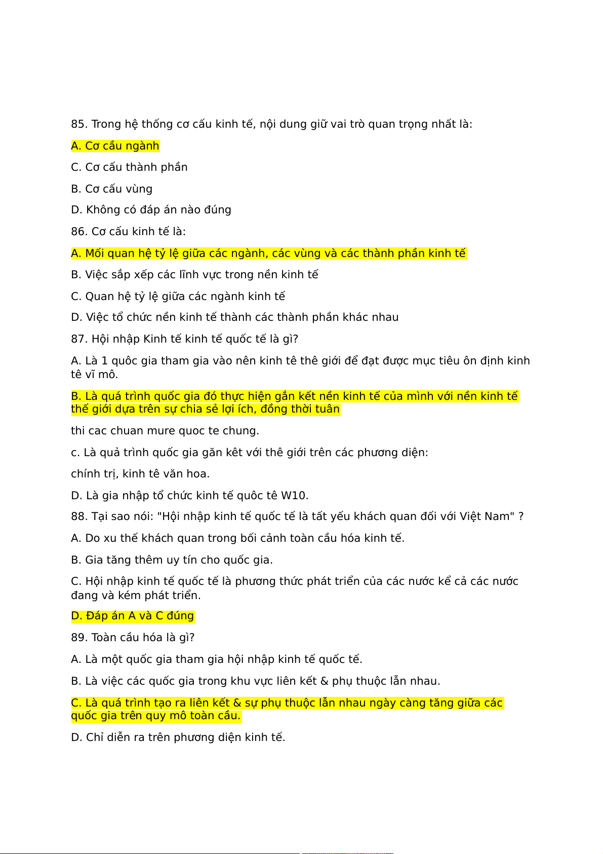 D. Không có đáp án nào đúng 86. Cơ cấu kinh tế là: