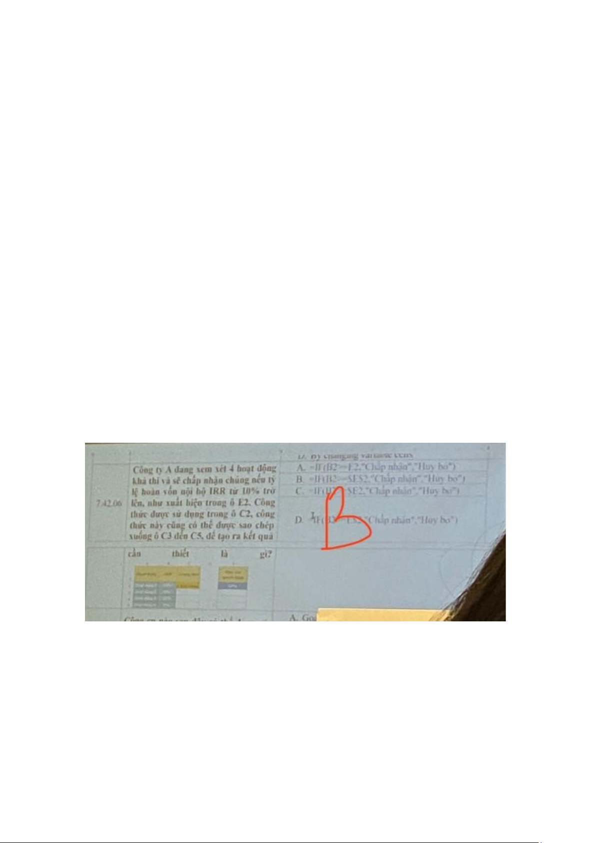 Sử dụng hàm nào để tính tổng tiền lương của các nhân viên làm việc ở phòng Tài chính ? lOMoAR cPSD| 61224927 A. SUMIFS B. SUM C. SUMIF D. SUMI
