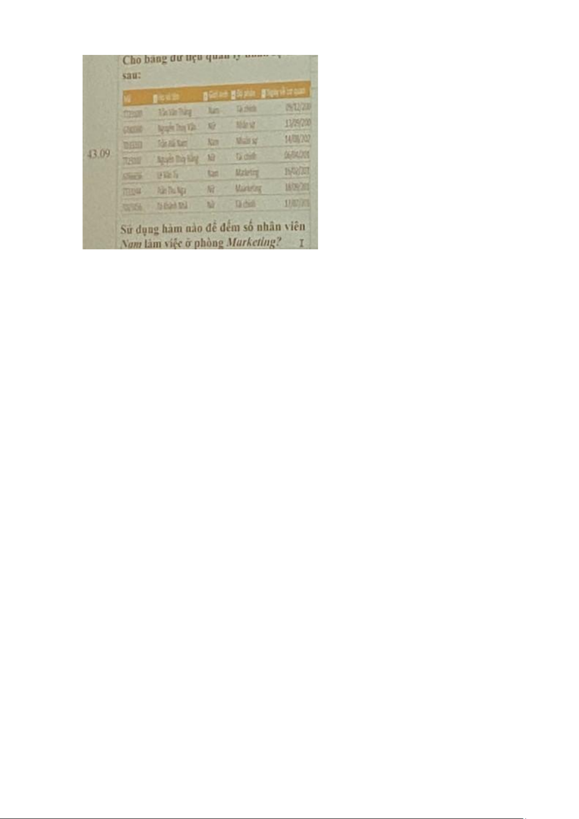 43.09: Cho bảng dữ liệu quản lý nhân sự như sau: