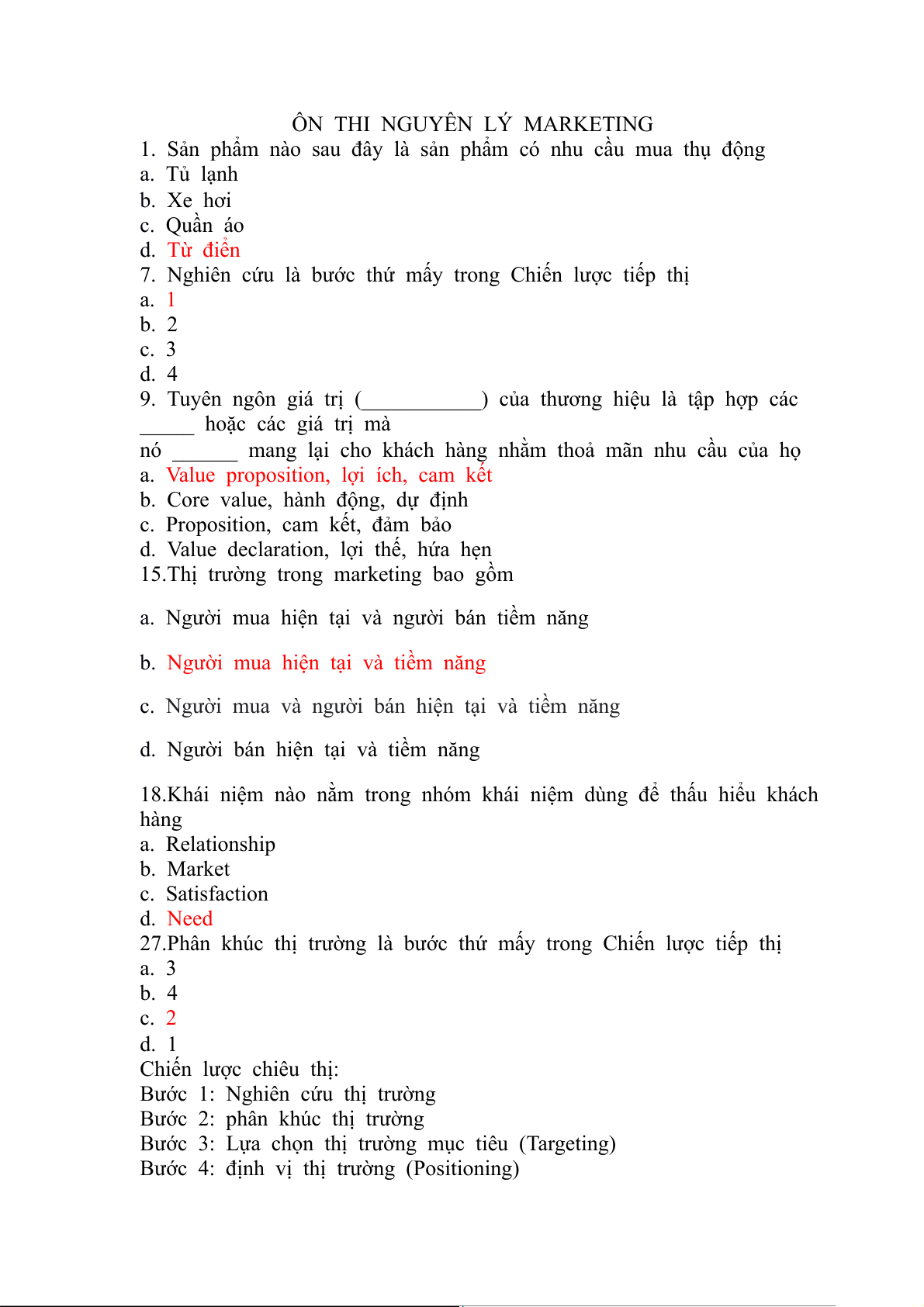 ÔN THI NGUYÊN LÝ MARKETING