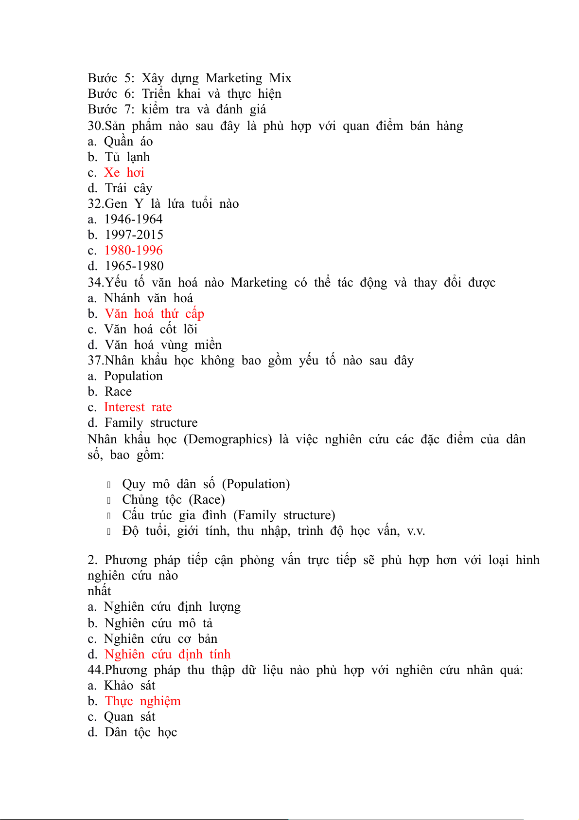 37.Nhân khẩu học không bao gồm yếu tố nào sau đây a. Population b. Race c. Interest rate d. Family structure