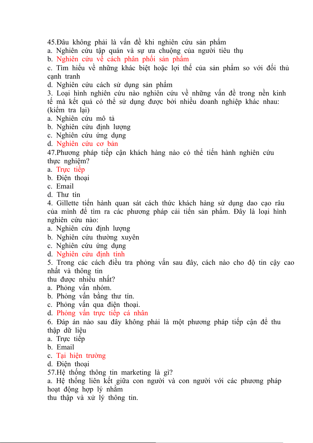 47.Phương pháp tiếp cận khách hàng nào có thể tiến hành nghiên cứu thực nghiệm? a. Trực tiếp b. Điện thoại c. Email d. Thư tín