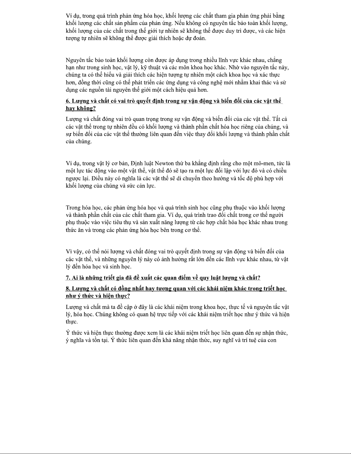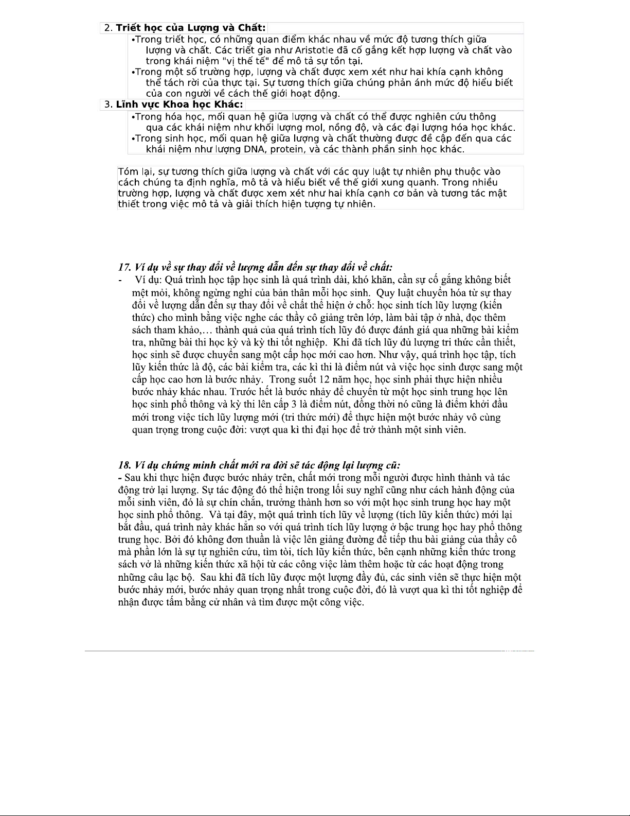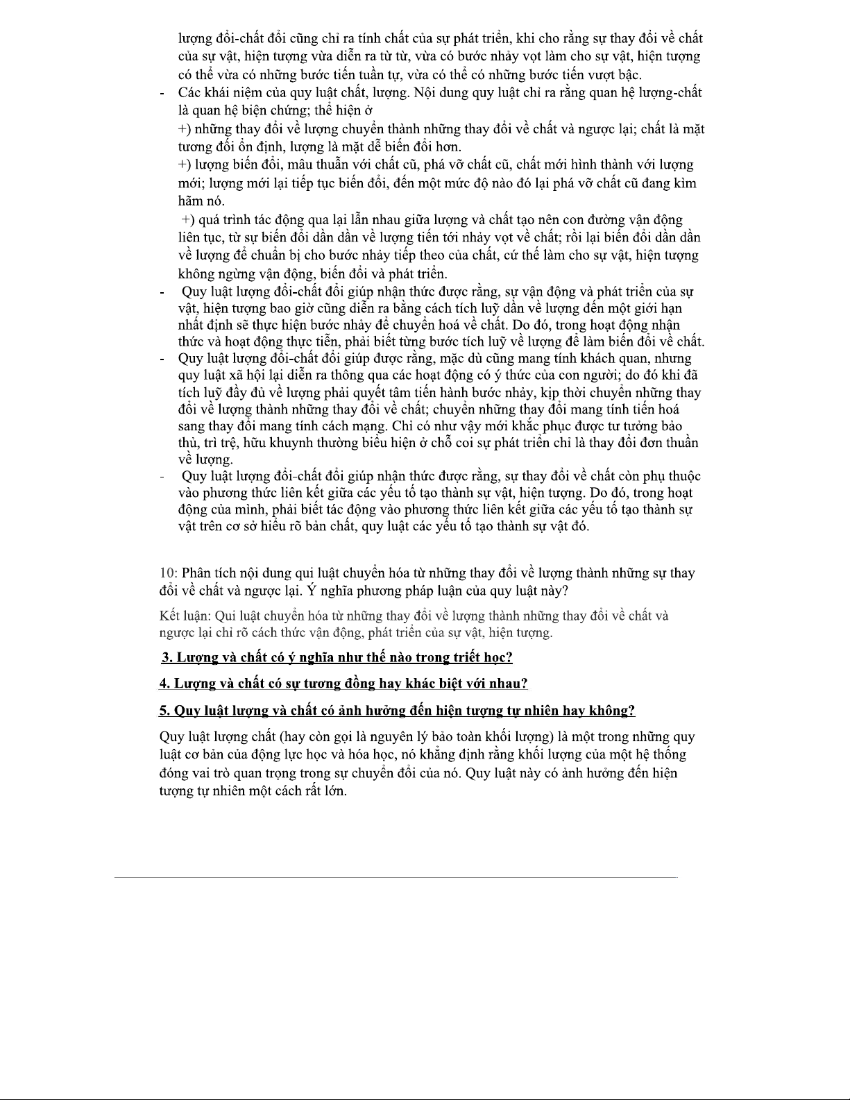 Câu hỏi và phân tích về quy luật lượng và chất trong triết học