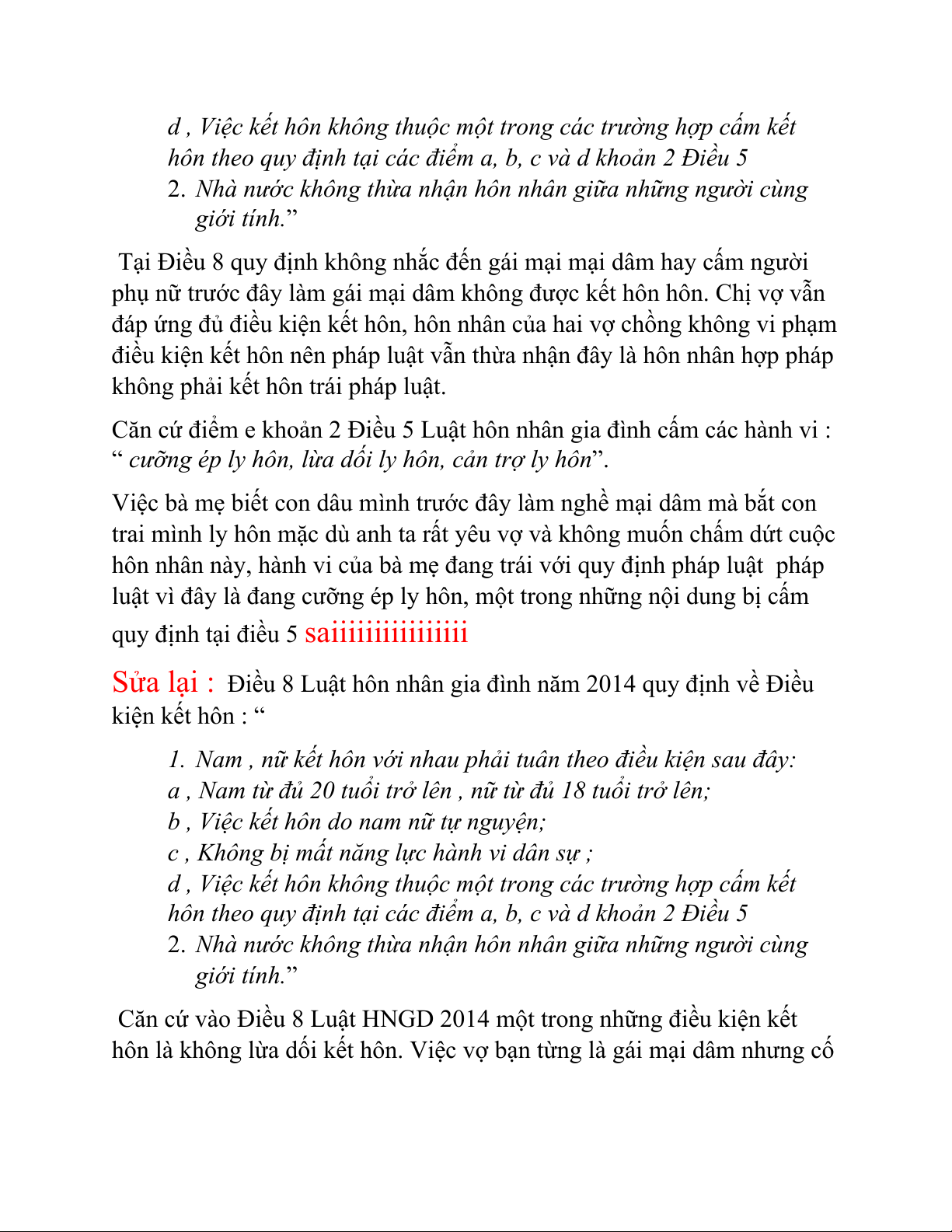 luật vì đây là đang cưỡng ép ly hôn, một trong những nội dung bị cấm