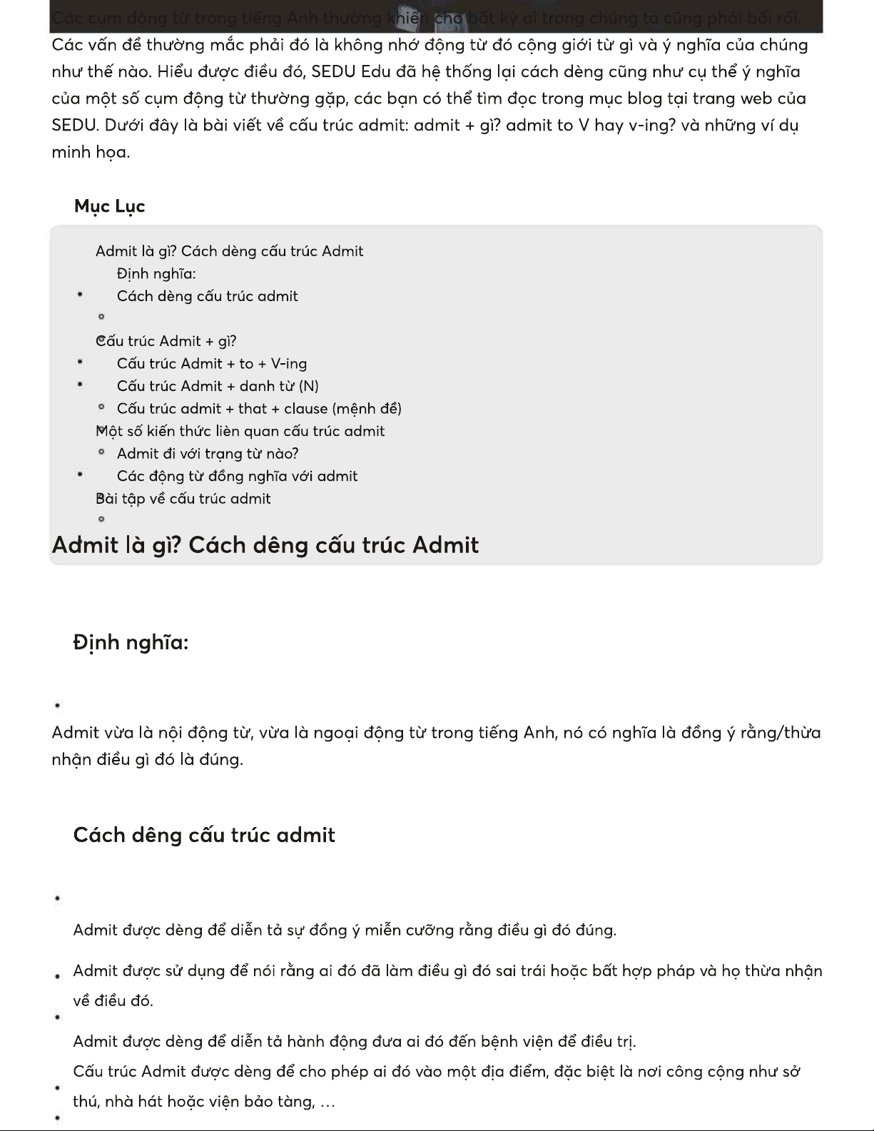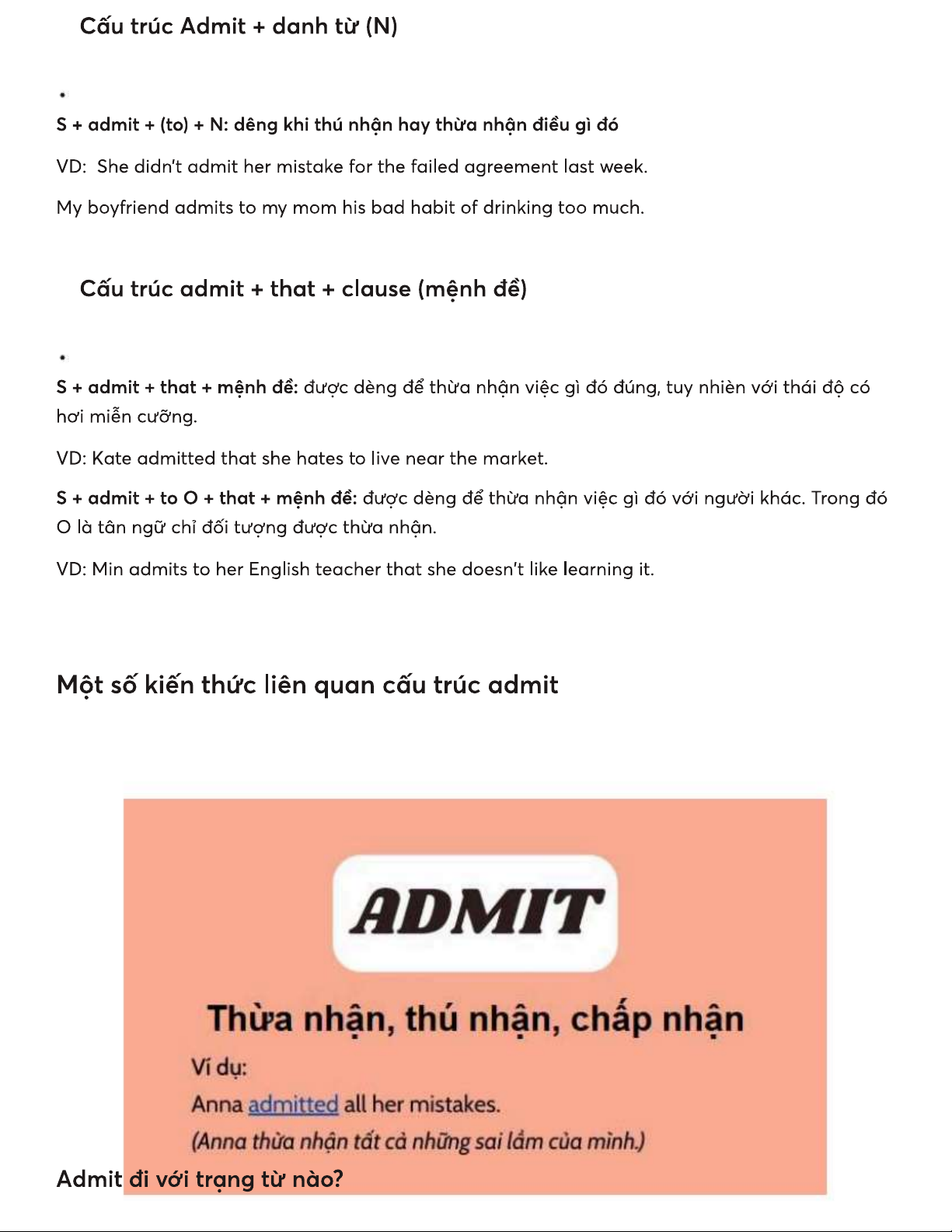 Cấu trúc Admit: Admit + gì? Admit to V hay V-ing? Hướng dẫn chi tiết