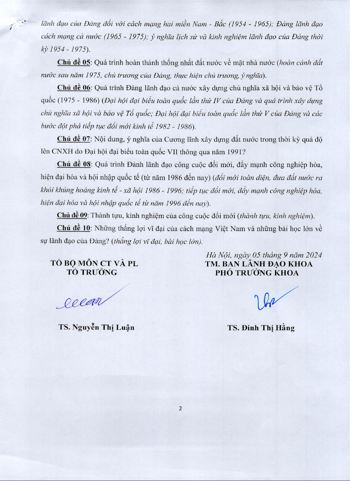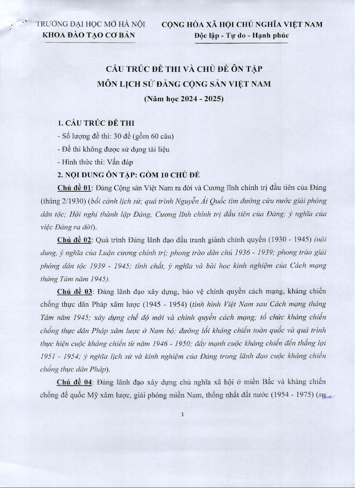 Cấu trúc đề thi và chủ đề ôn tập môn Lịch sử Đảng cộng sản Việt Nam | Viện Đại học Mở Hà Nội