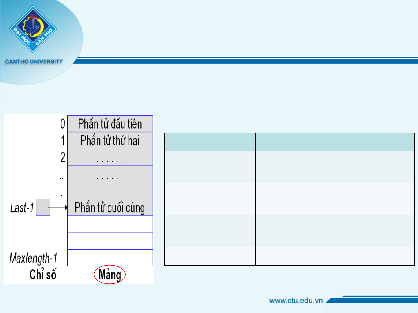 Ví dụ: kiểu dữ liệu trừu tượng danh sách đặc Tên phép toán Công dụng