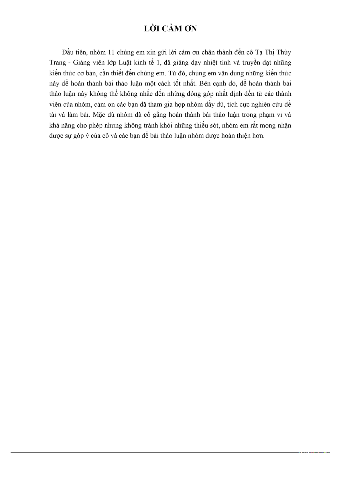 Kính gửi: Cô Tạ Thị Thùy Trang – giảng viên dạy học phần Luật kinh tế 1