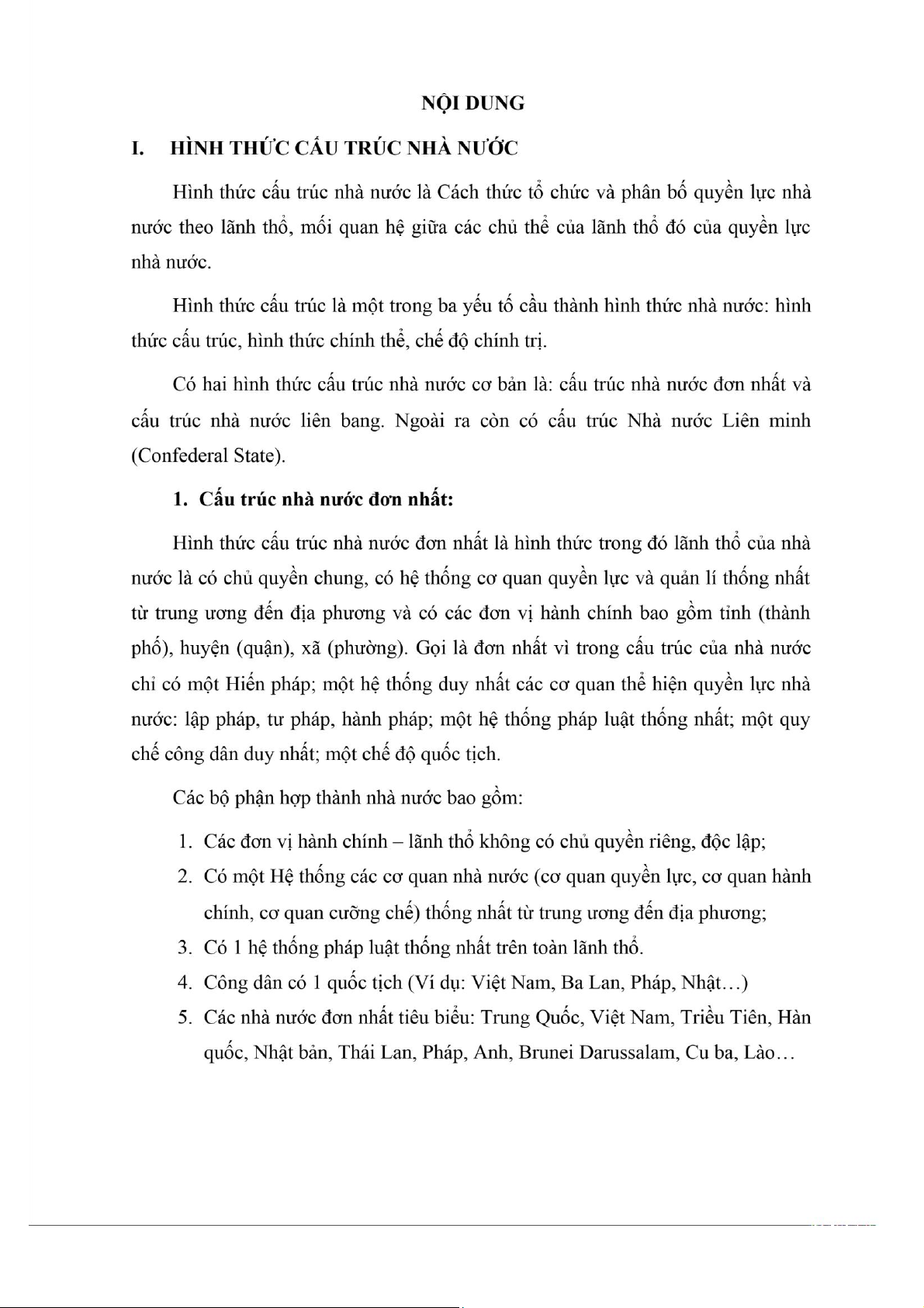 I. Hình thức cấu trúc nhà nước ................................................... .. ... ... .. ... ... .. ... .. .1