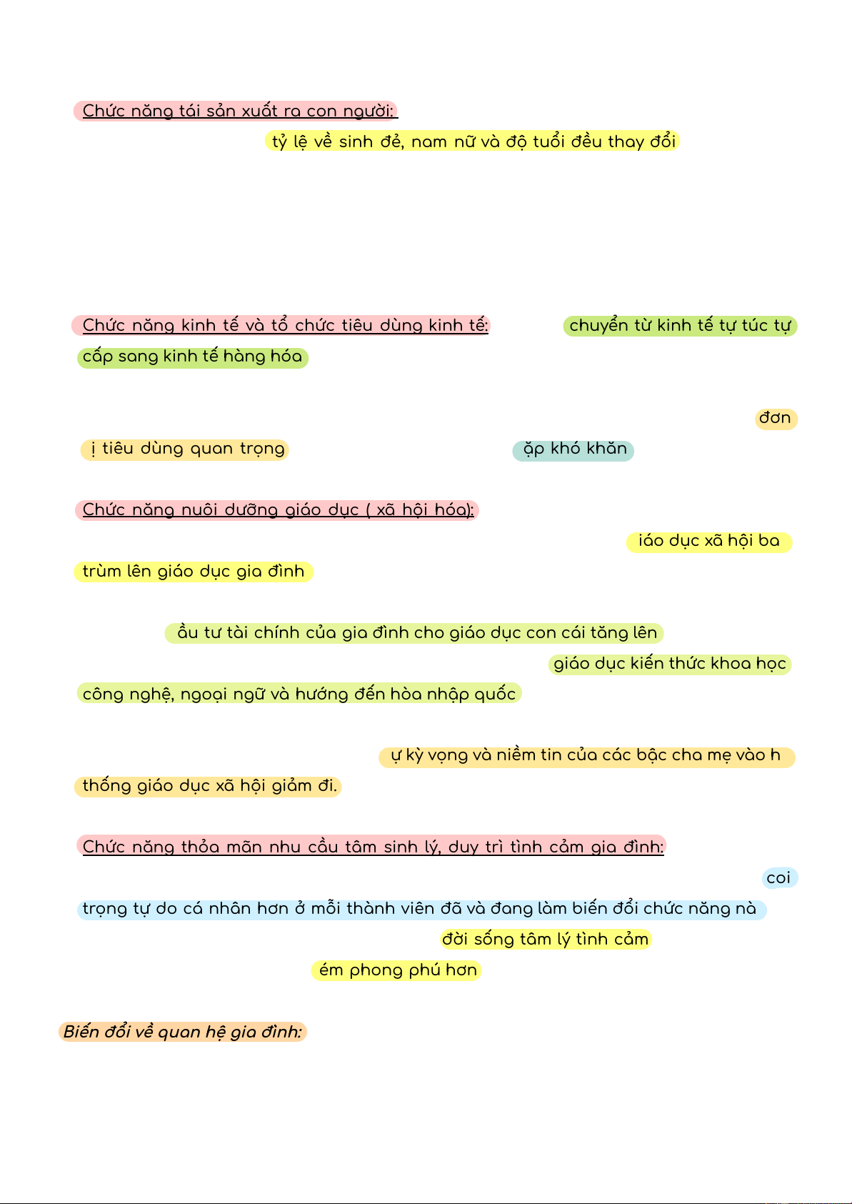 + Biến đổi về các chức năng của gia đình 10 -