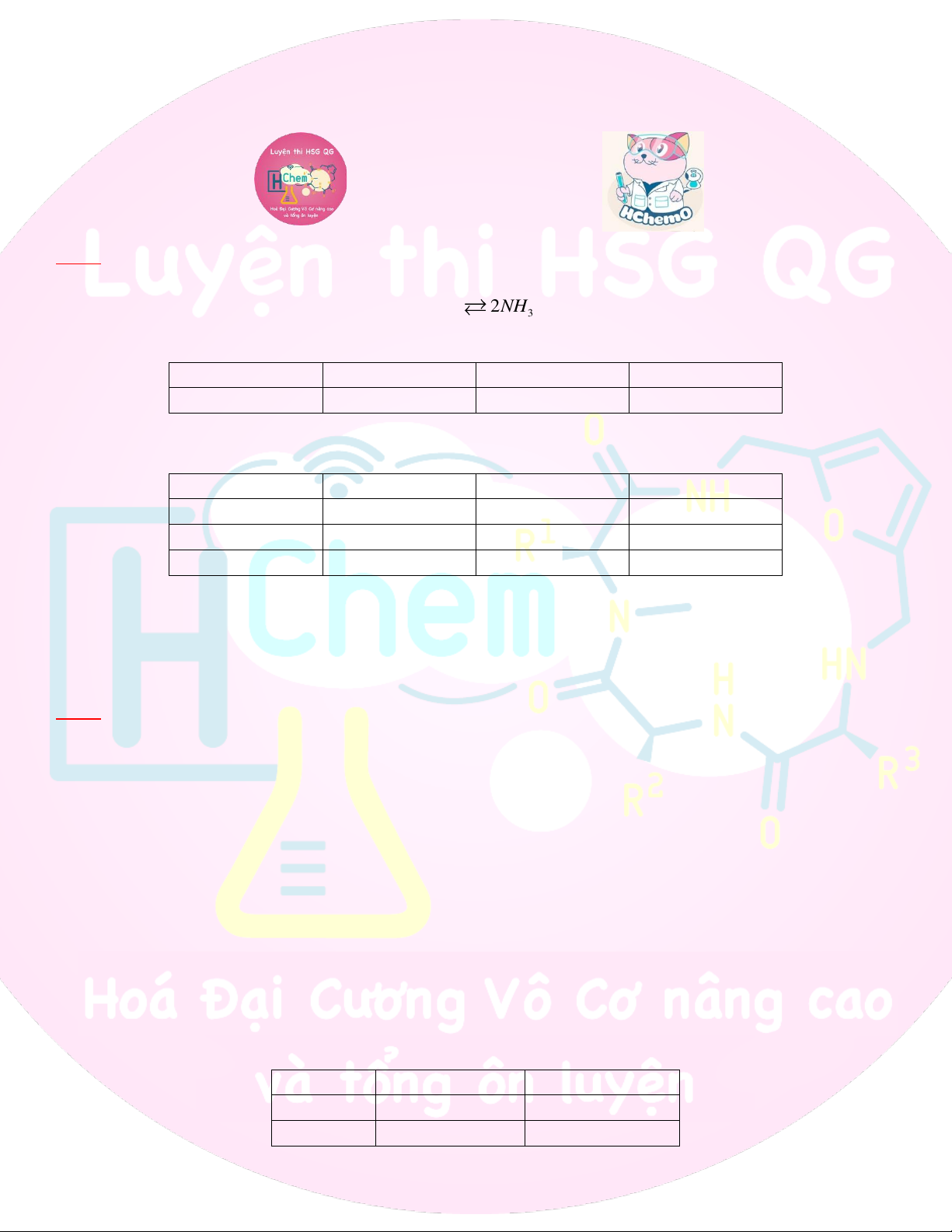 Các giá trị a, b và c của các khí được cho trong bảng: Chất a (J.mol-1.K-1) b (J.mol-1.K-2) c (J.mol-1.K-3) N2(g) 27,3 5,2.10-3 -1,7.10-6 NH3(g) 24,2 4.10-2 -8,2.10-6 H2(g) 28,9 -5,8.10-4 1,9.10-6