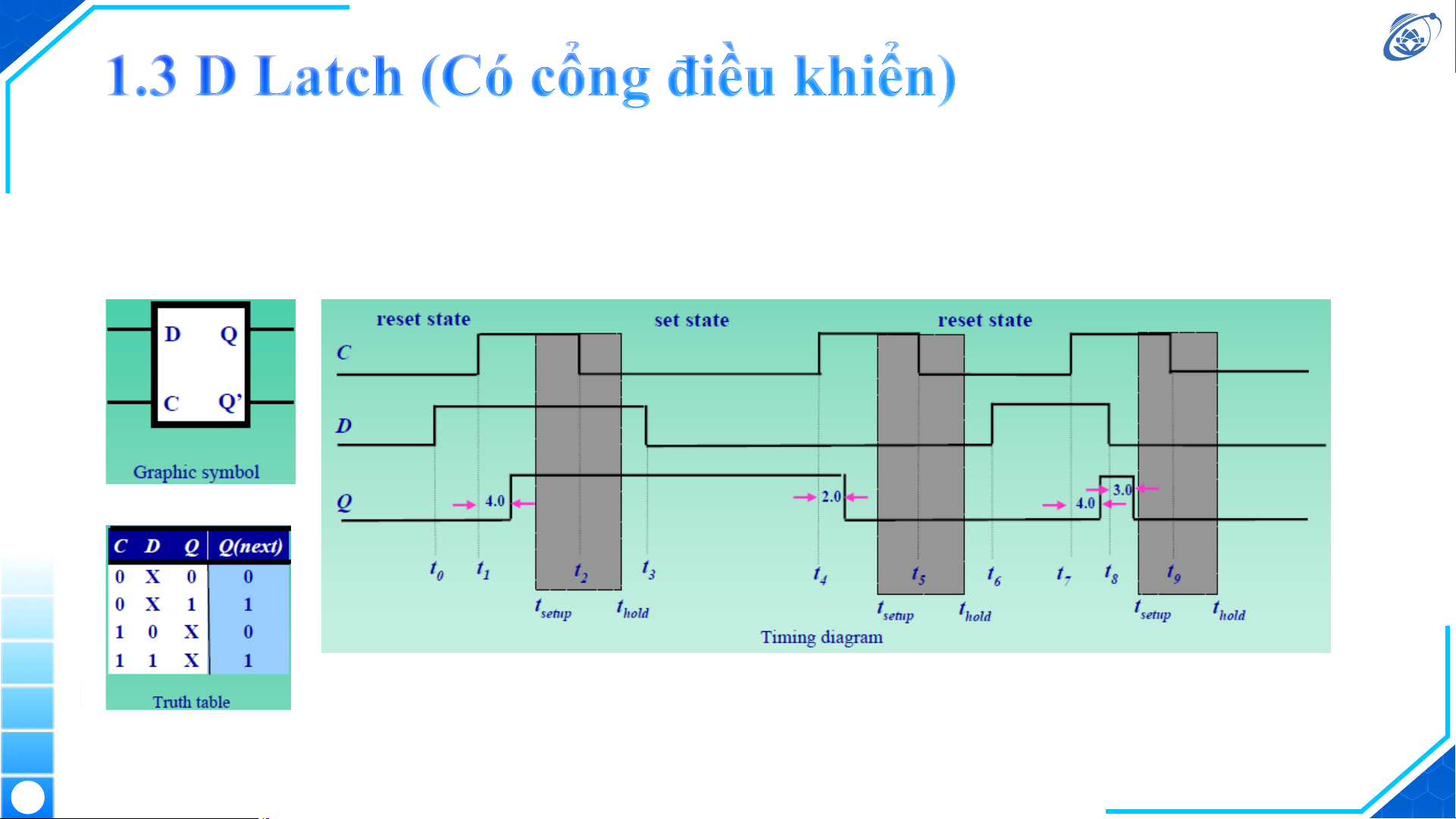 • Tín hiệu điều khiển C kích hoạt D Latch