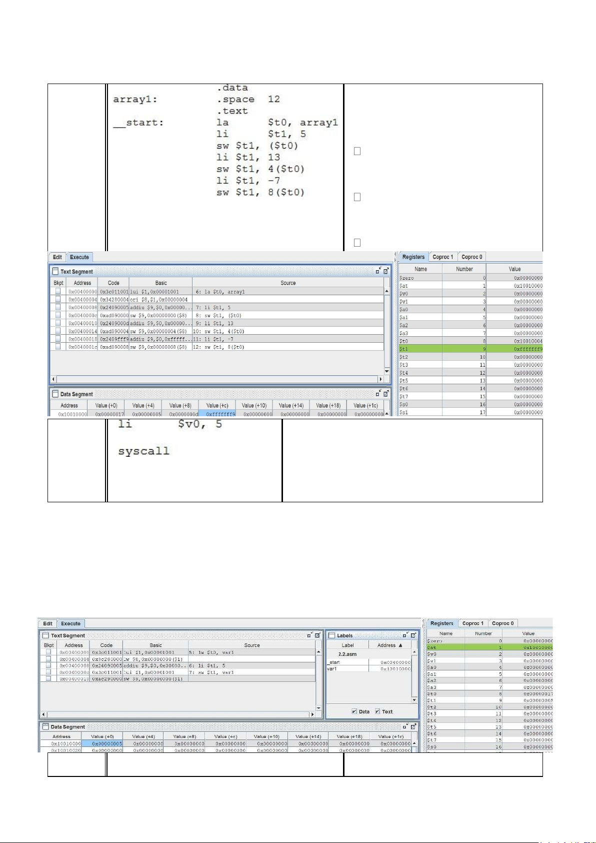 8 12 array1 lưu giá trị của $t1 Ví dụ 3: # Giá trị thanh ghi v0 = 5