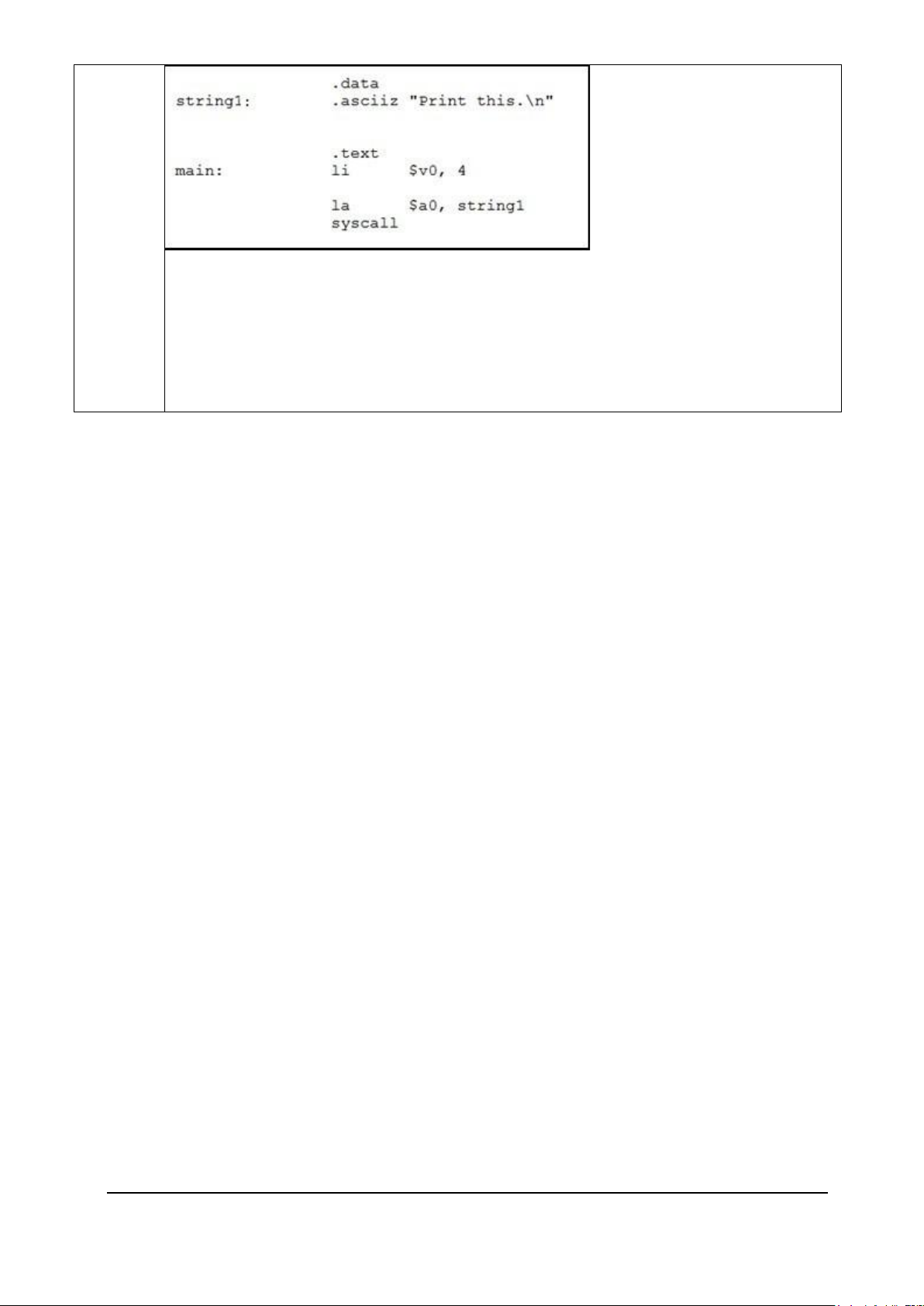 Tạo một chuỗi tên string1 với khởi tạo “Print this.\n”. Gán giá trị thanh ghi $v0 = 4 (thực