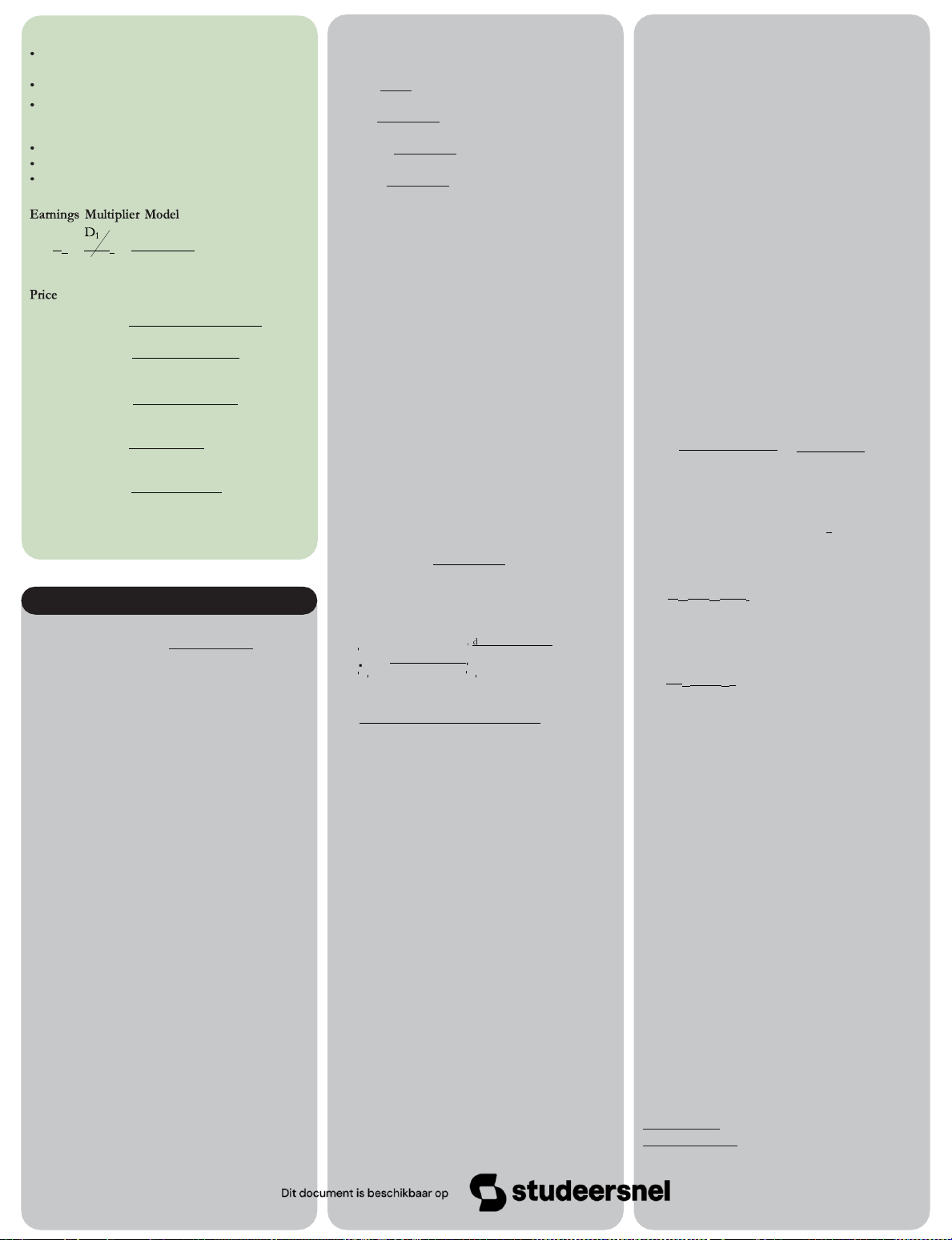 Holding Period Return (HPR) Difference in means t n + n – 2 1 2 COV(R ) P +D P +D i, R j corr(R )= Mean differences t n – 1 i ,R j or σ( ) P Ri )σ(R j P Variance χ2 n – 1 Return Equal variances F n – 1, n – 1 1 2 (1+ HPR)365/days −1 Correlation t n – 2 var R =