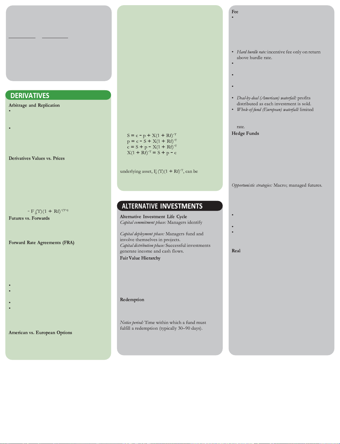 futures price ≈ spot price(1 + R ) + storage costs f exposure. – convenience yield Restrictions
