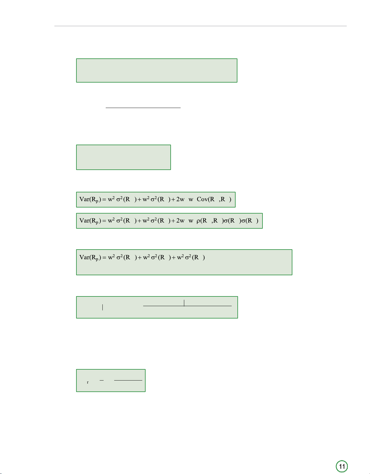E(Rp ) = wi E(Ri ) = w1E(R1) + w2E(R2 ) +⋯+ wNE(RN ) i=1 where: Market value of investment i Weight of asseti = Market value of portfolio Portfolio Variance N N