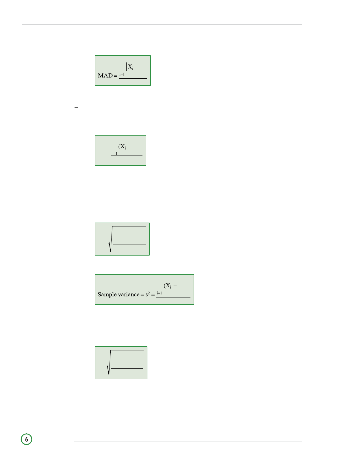 Population Standard Deviation N (Xi − )2 = i=1 N Sample Variance n (Xi − X)2 n − 1 where: n = sample size.