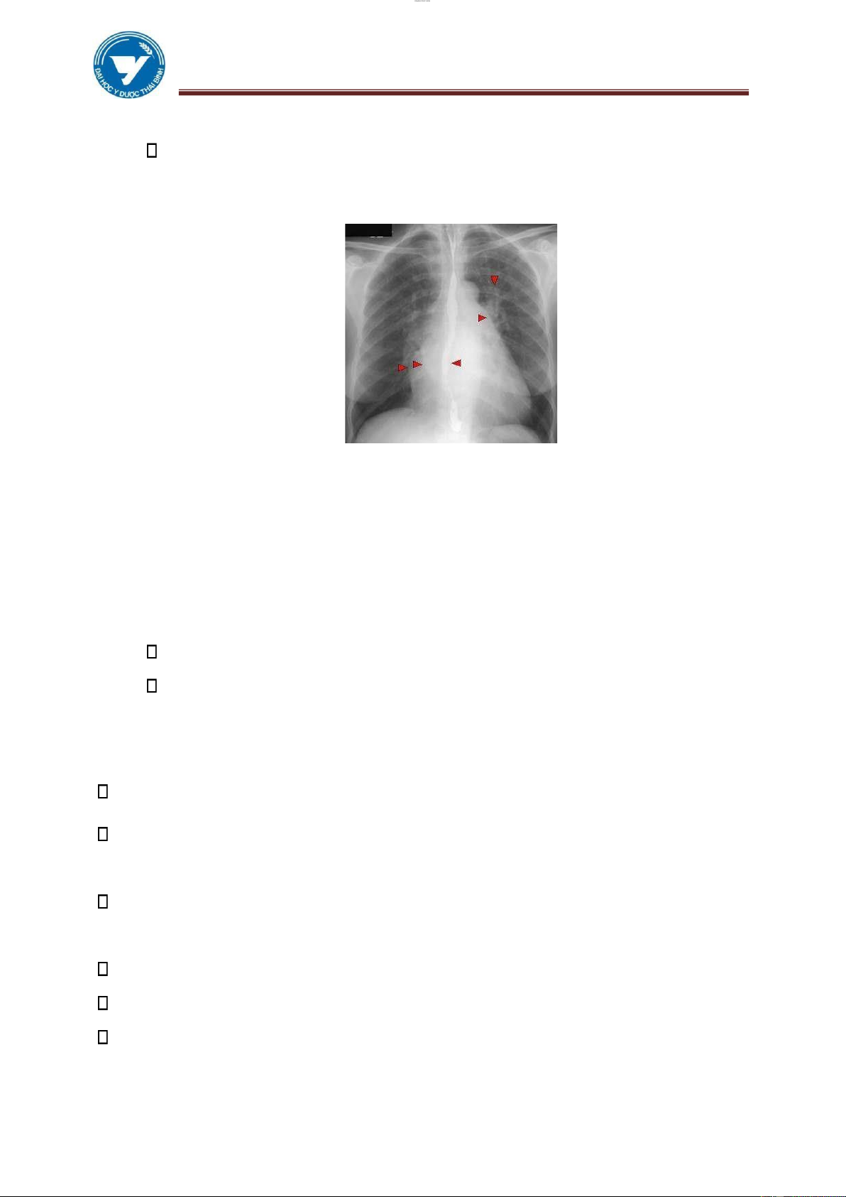(6), (7), (8), (9): tim bị ẩy. Gù vẹo cột sống (3) Dày dính màng phổi (4) Xơ phổi, xẹp phổi (5) Bệnh béo phì (6) Hơi nhiều trong ruột (7) Cổ chướng (8) Phụ nữ có thai (9)