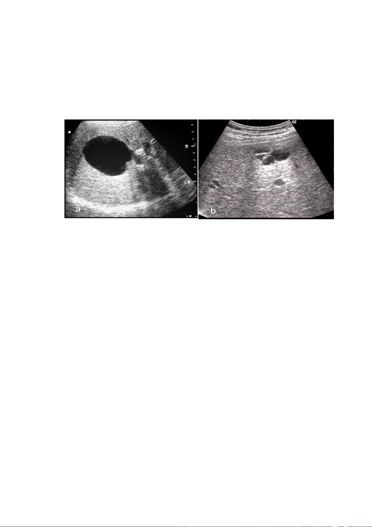 Hình.3.1. a. Nang gan điền hình không có vách với hình rỗng âm và tăng âm phía