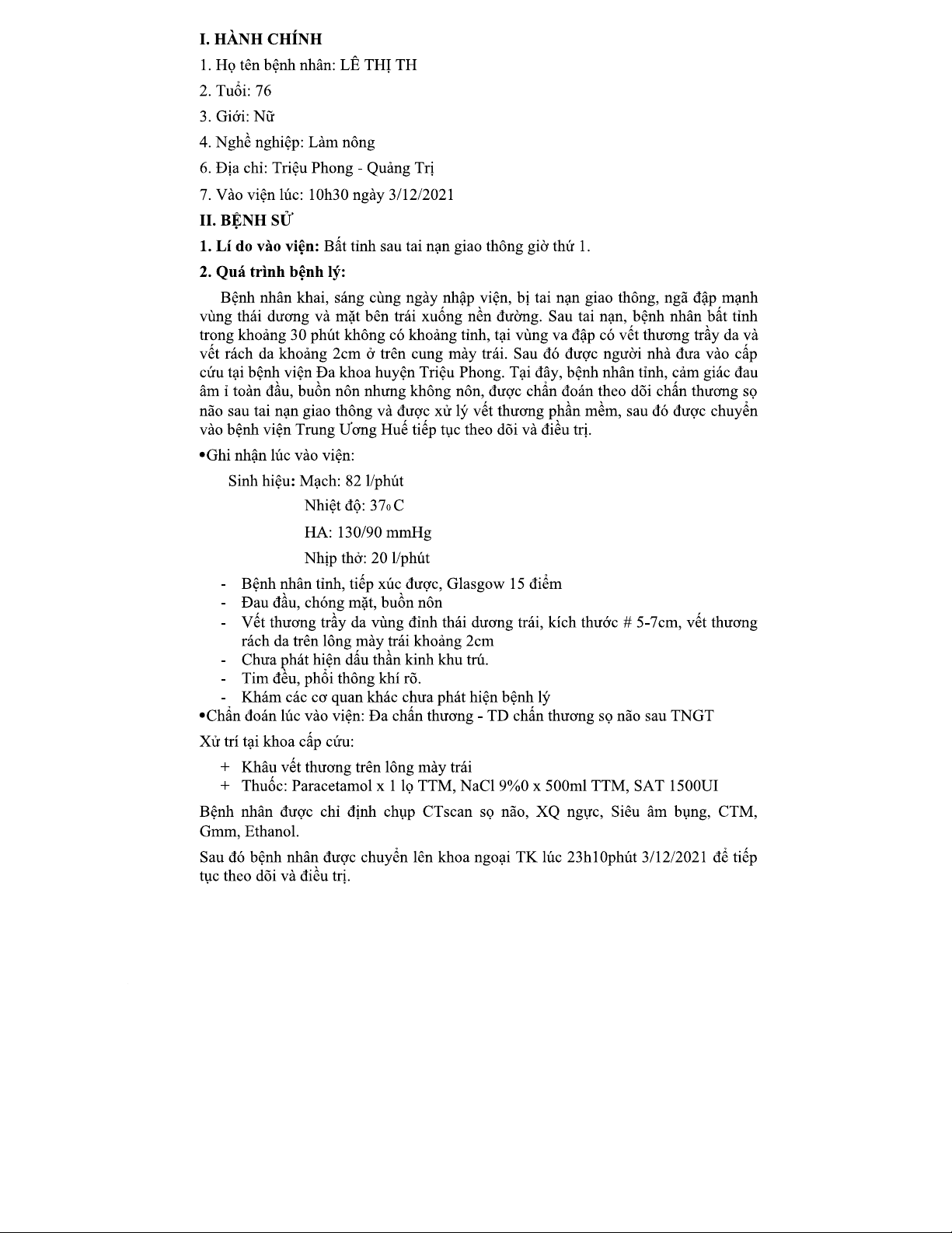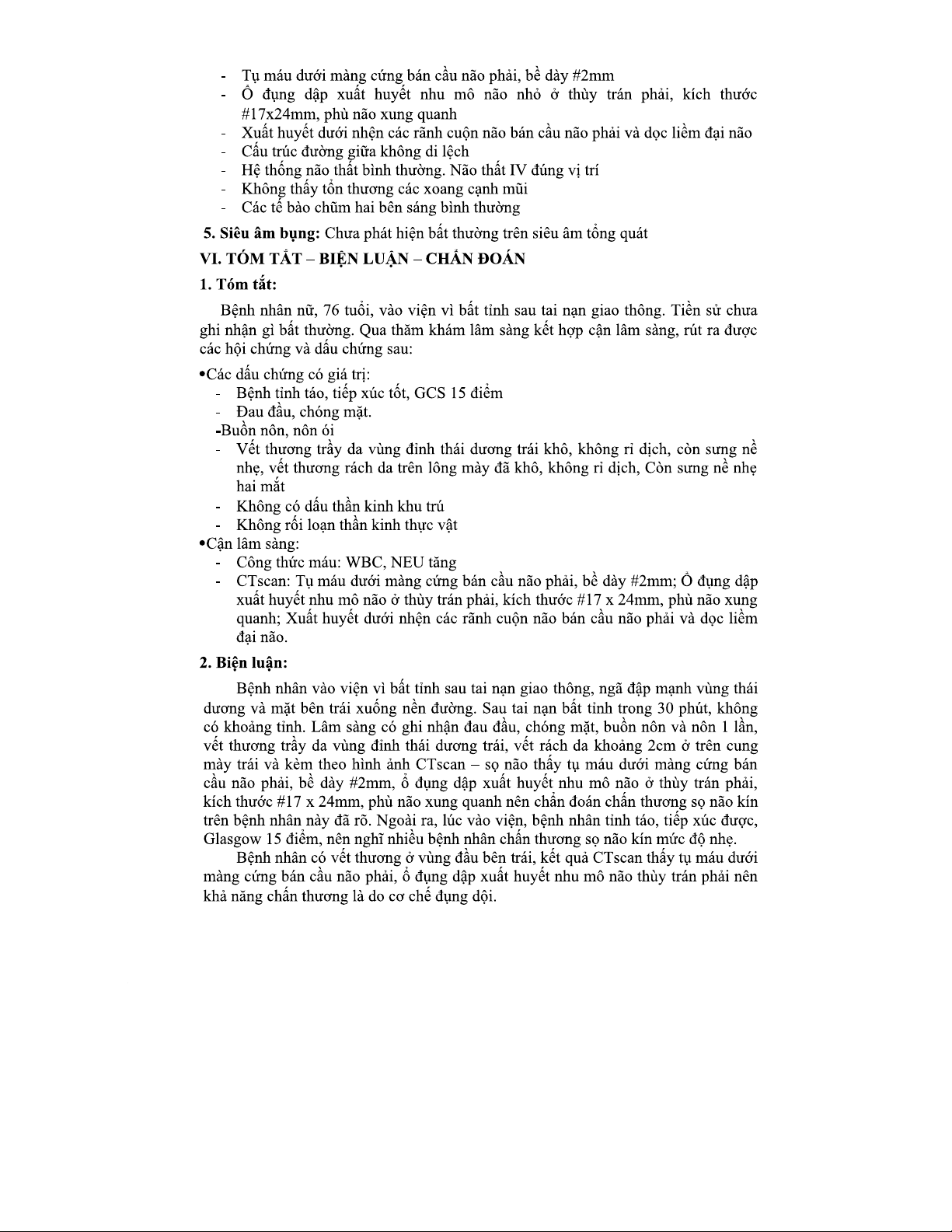 Chẩn đoán và Điều trị Chấn Thương Sọ Não Sau TNGT cho BN 76t