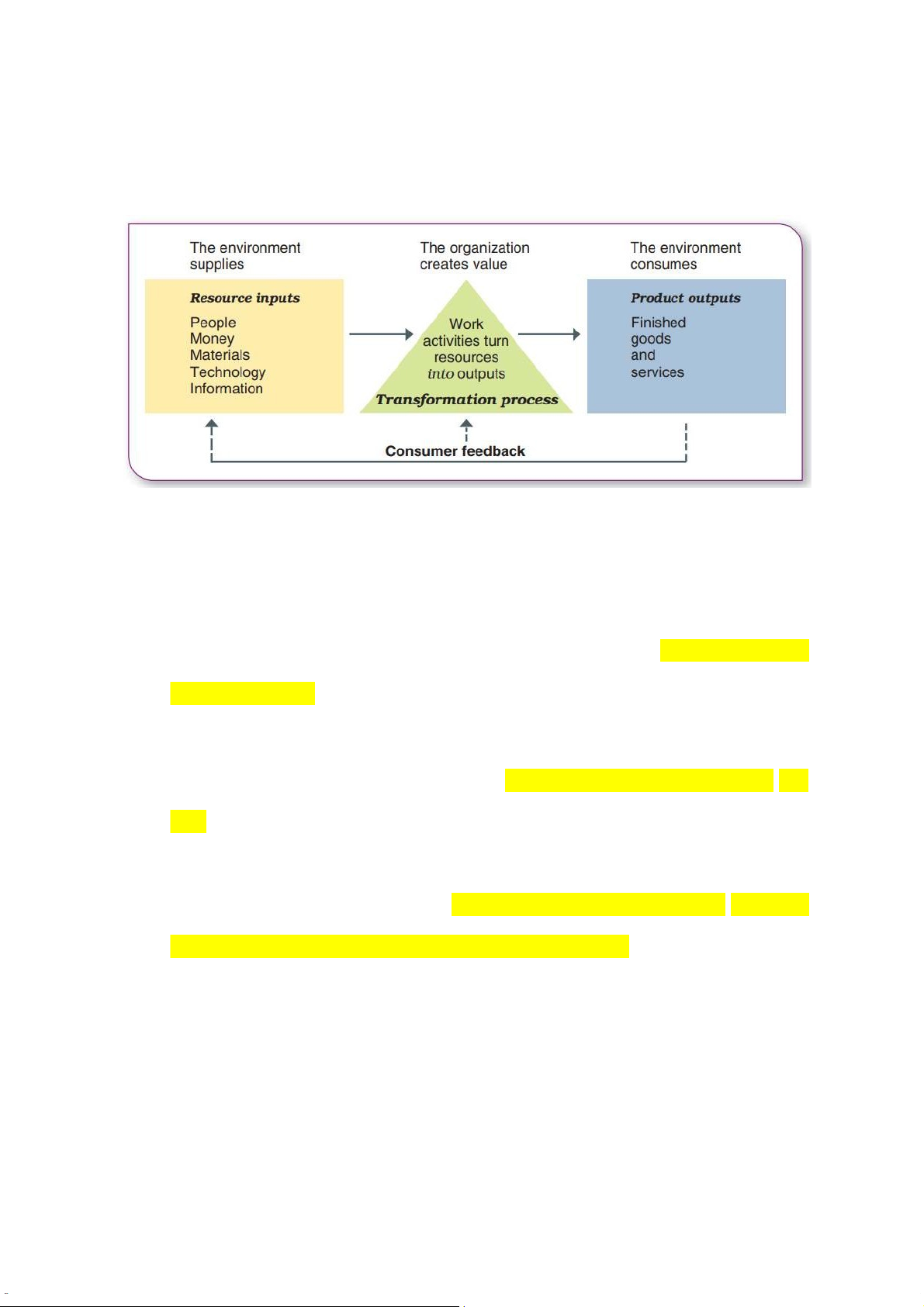 inputs from the environment into product outputs. c) Organizational performance