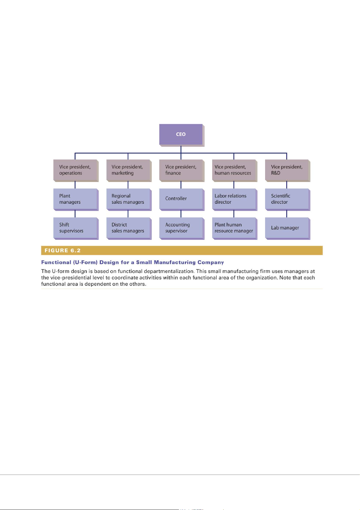 functional units headed by VPs of engineering, production, finance, and