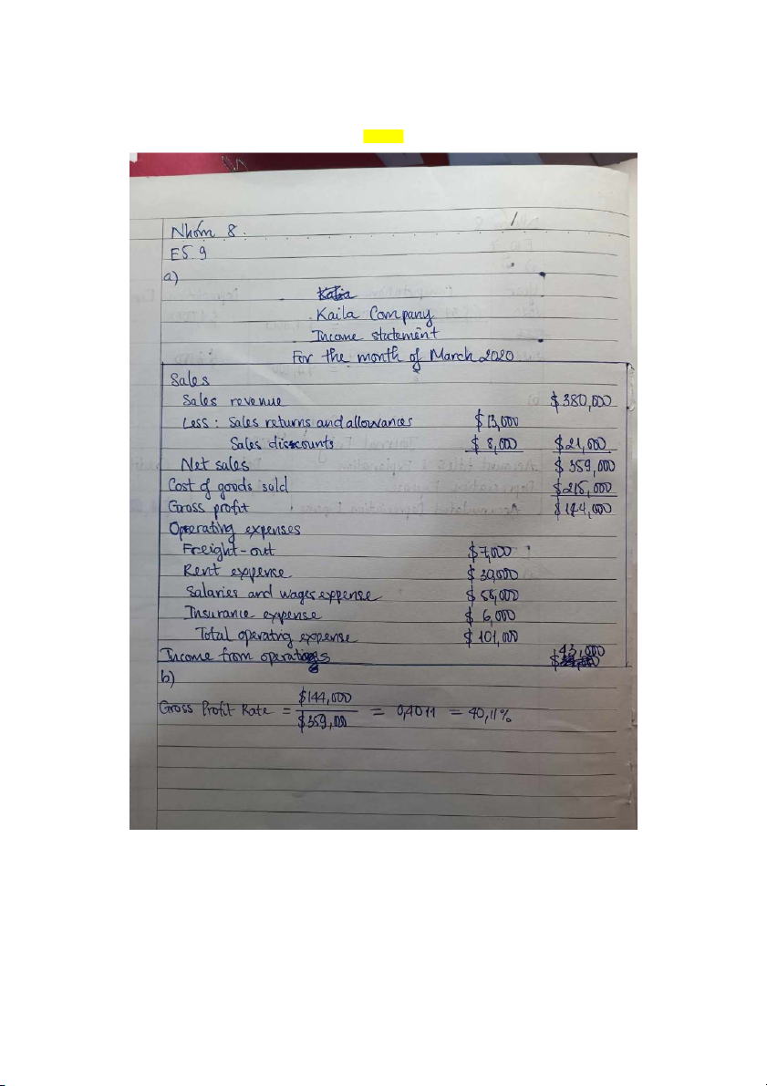 c. Income statement through gross profit for the month of May 2020: Renner Hardware Store Income Statement For the Month of May 2020 Sales Cash Sales $3,200