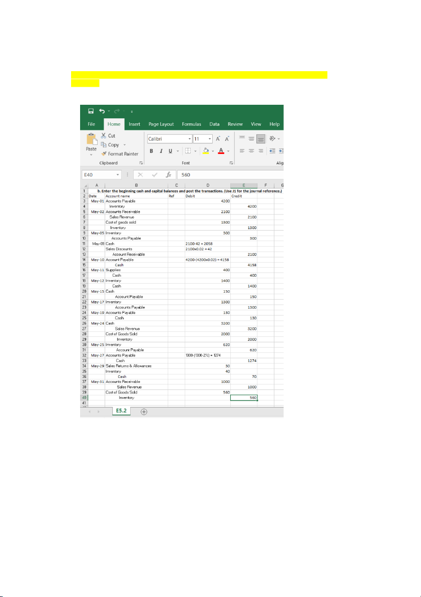 Dr. Inventory 40 ($70 - $30 fair value of returned merchandise) Cr. Cash 70 May 31: Dr. Accounts Receivable 1,000 Cr. Sales Revenue 1,000 Dr. Cost of Goods Sold 560 Cr. Inventory 560