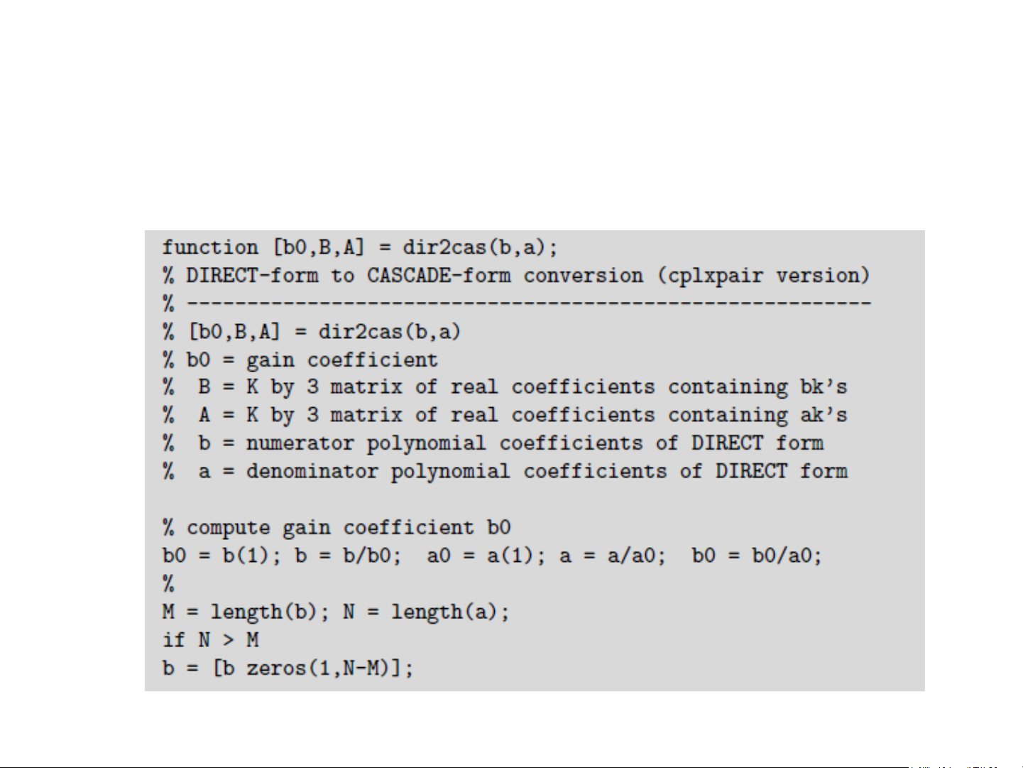 • Lệnh [b0,B,A] = dir2cas(b,a)