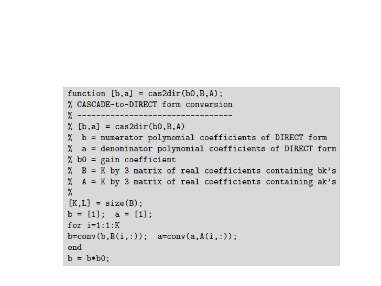 • Lệnh y = casfiltr(b0,B,A,x) thực hiện lọc tín hiệu với cấu