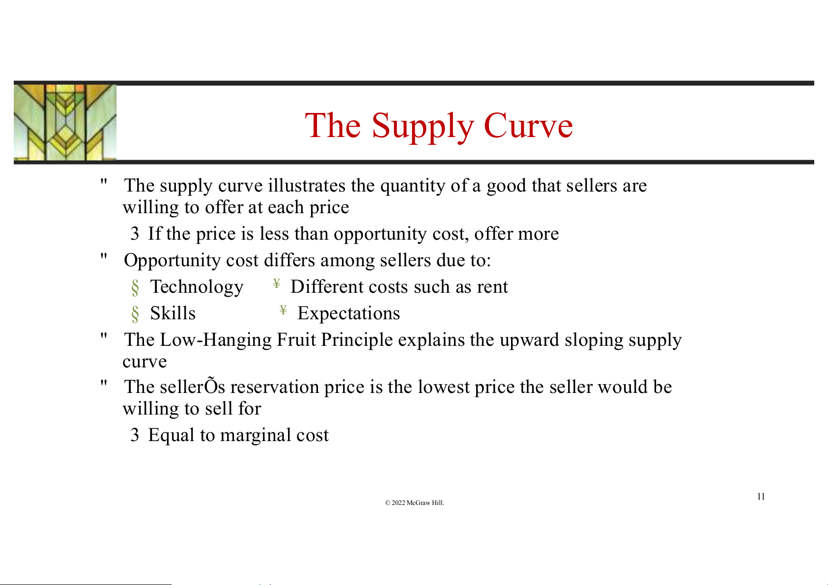 willing to pay $4 per slice for the 8,000thslice sold in the $2 D market. Q 8 16 (1,000s of slices/day) 10 © 2022 McGraw Hill. The Supply Curve