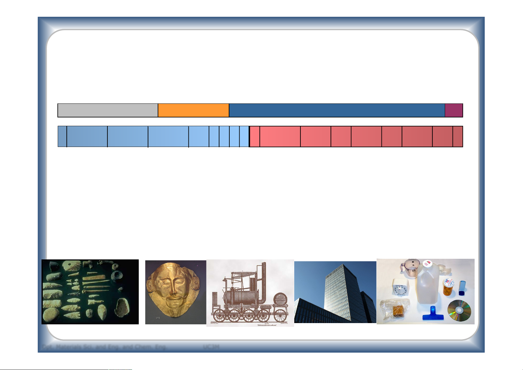 HISTORIC EVOLUTION OF MATERIALS Stone age Bronze age Iron age BC AD 0 500 9000 7000 5000 3000 2000 1500 1000 100 500 800 1000 1300 1500 1800 1900 2000 -Sn) Iron bones Paper Sn, ...) olution ys, wood, u, Ag, Cu, e (Cu Porcelain ev Polymers Blown glass ed stone, skins, ynthetic Fibers ansparent glass, bronz S Surface processing Magnetic Supports work Metals (A Neolithic, cla Industrial R Silk, tr Aluminium (Mét. Hall) Paleolithic: wood, stone,