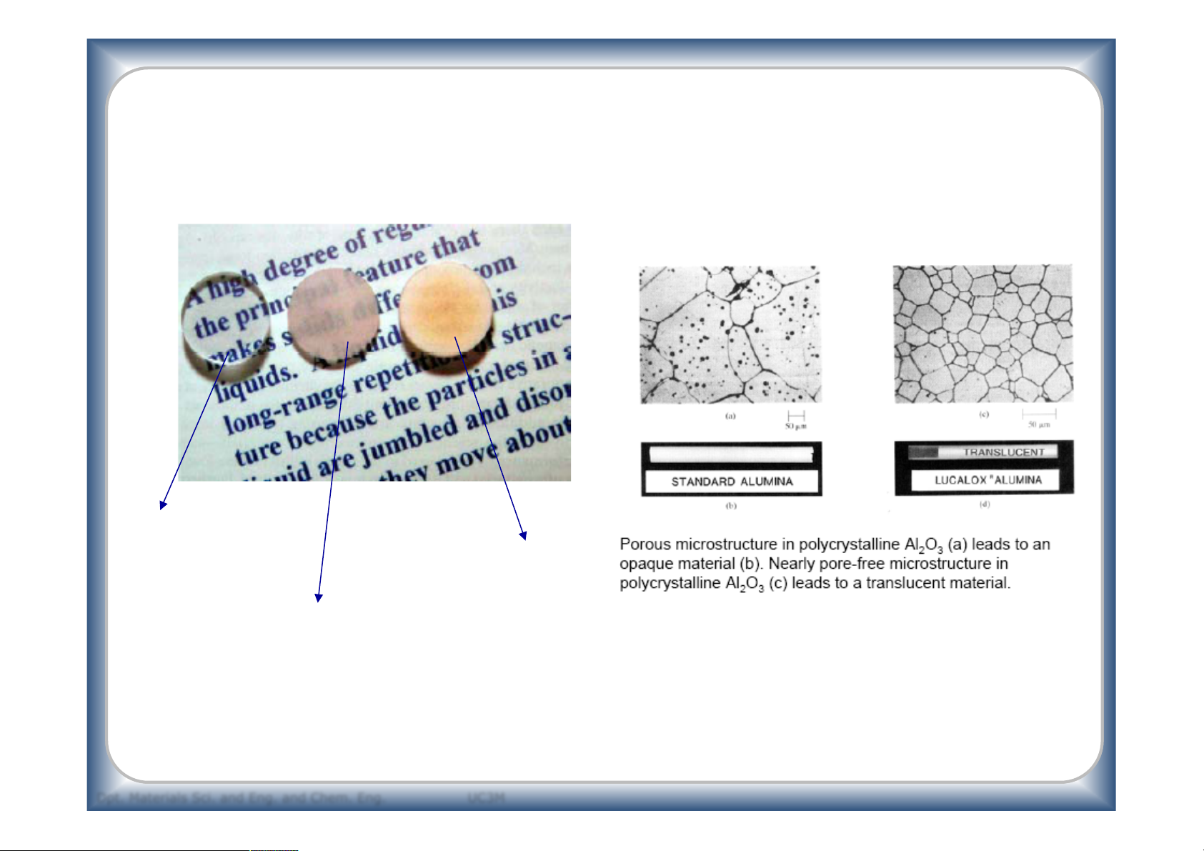 Structure, Properties and Processing Transparent Single crystal Opaque without defects Polycrystalline Grain boundaries + pores Translucent Polycrystalline Grain boundaries