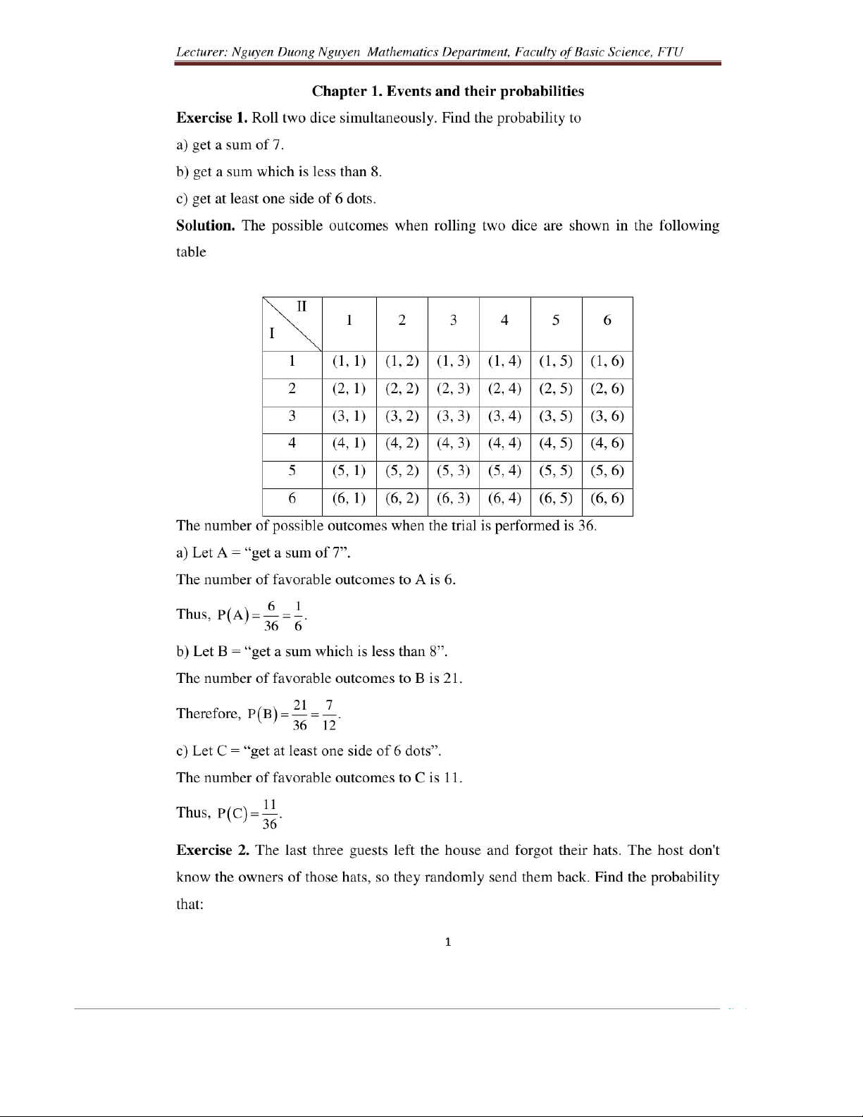 Chapter 1. Events and their probabilities môn Xác suất thống kê| Trường Đại học Ngoại Thương