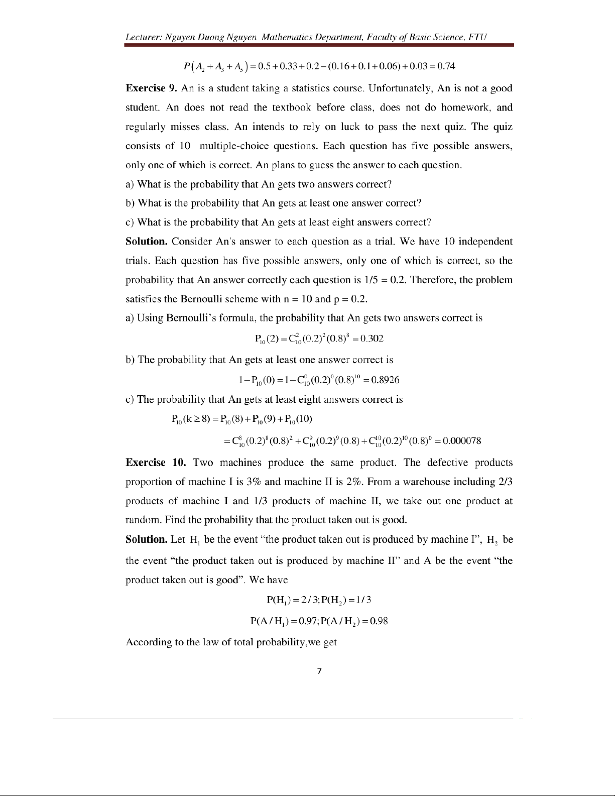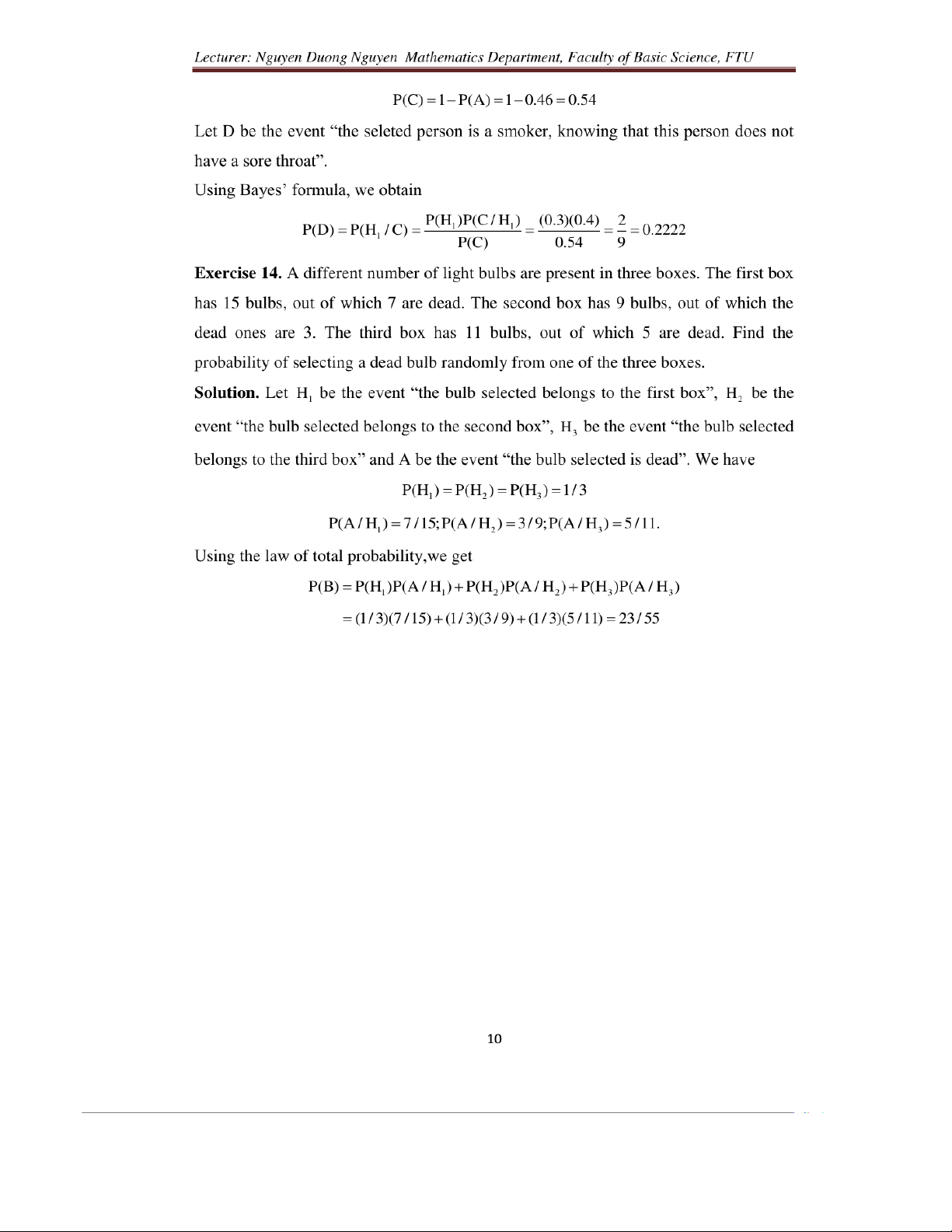 Exercises for probability & statistics môn Xác suất thống kê| Trường Đại học Ngoại Thương